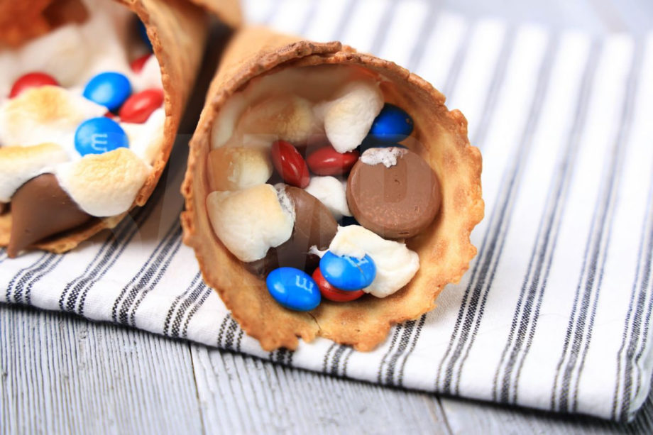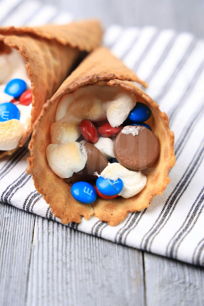 4th Of July Campfire Cones is made with Hershey’s kisses, marshmallows, and red and blue M&M’s. This is a semi exclusive recipe. The 4th Of July Campfire Cones comes on a white striped napkin on a gray wood backdrop. Set comes with 15 in process (in process are the same for all sets) and 15 final shots (finals are different for each set) along with recipe in text format. Both vertical and horizontal shots are available for social media. One set of four. Sample removed on finals.