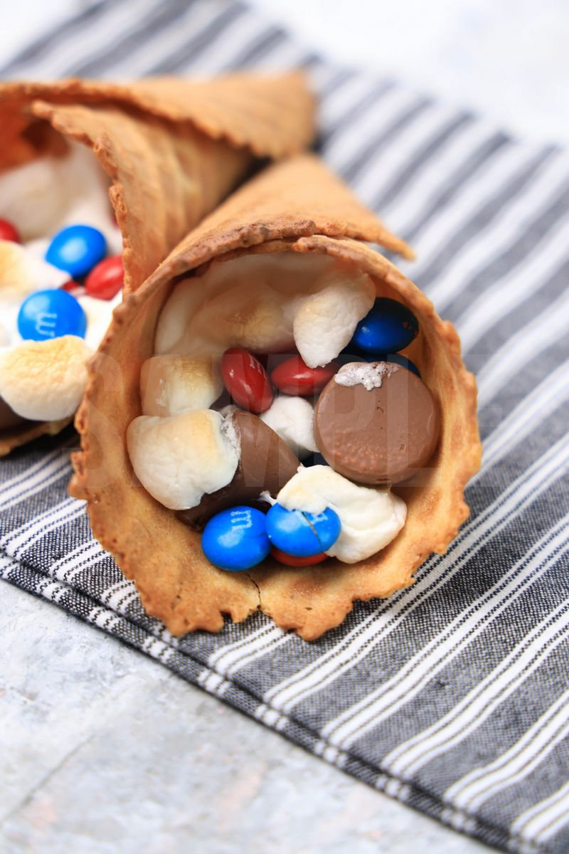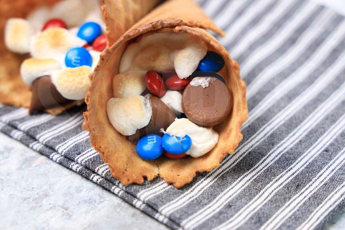 4th Of July Campfire Cones is made with Hershey’s kisses, marshmallows, and red and blue M&M’s. This is a semi exclusive recipe. The 4th Of July Campfire Cones comes on a gray striped napkin on a marble backdrop. Set comes with 15 in process (in process are the same for all sets) and 15 final shots (finals are different for each set) along with recipe in text format. Both vertical and horizontal shots are available for social media. One set of four. Sample removed on finals.