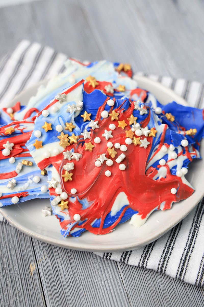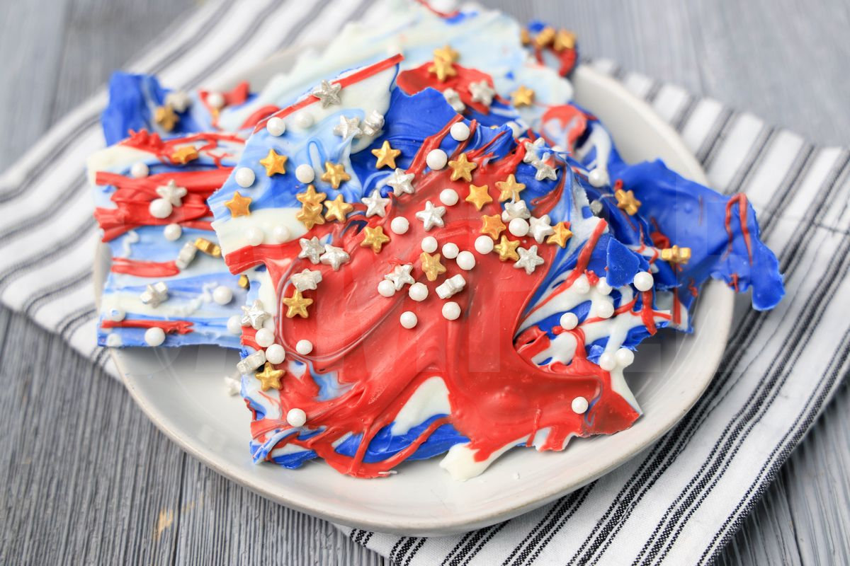 4th Of July Candy Bark is made with blue candy melts, red candy melts, and sprinkles. This is a semi exclusive recipe. The 4th Of July Candy Bark comes on a white plate with a white striped napkin on a gray wood backdrop. Set comes with 12 in process (in process are the same for all sets) and 18 final shots (finals are different for each set) along with recipe in text format. Both vertical and horizontal shots are available for social media. One set of four. Sample removed on finals.