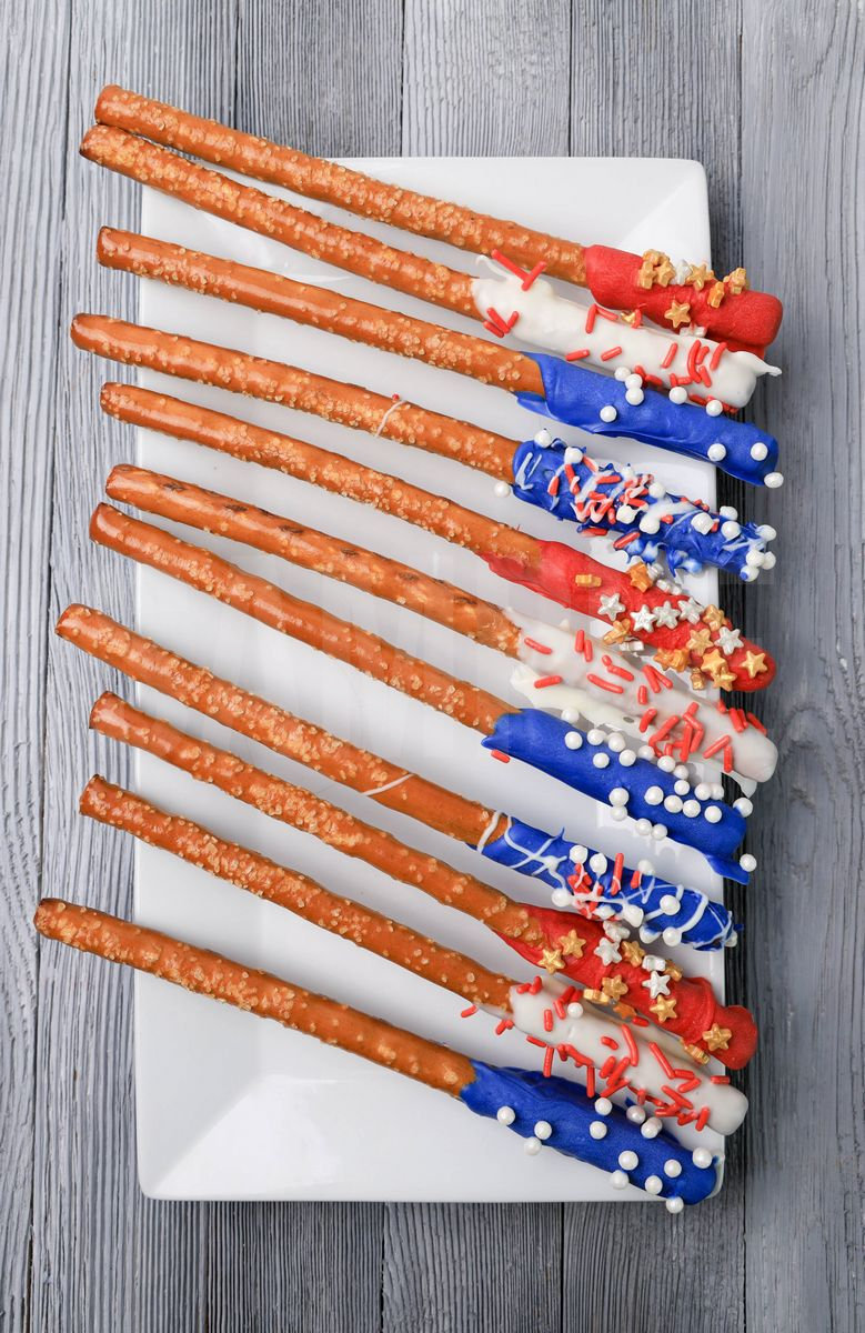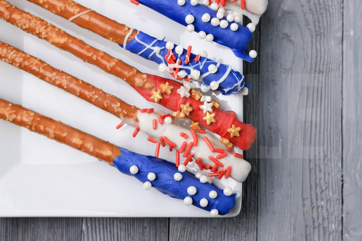4th Of July Pretzel Rods is made with pretzel rods, candy melts, and sprinkles. This is a semi exclusive recipe. The 4th Of July Pretzel Rods comes on a white plate with a gray wood backdrop. Set comes with 16 in process (in process are the same for all sets) and 15 final shots (finals are different for each set) along with recipe in text format. Both vertical and horizontal shots are available for social media. One set of four. Sample removed on finals.