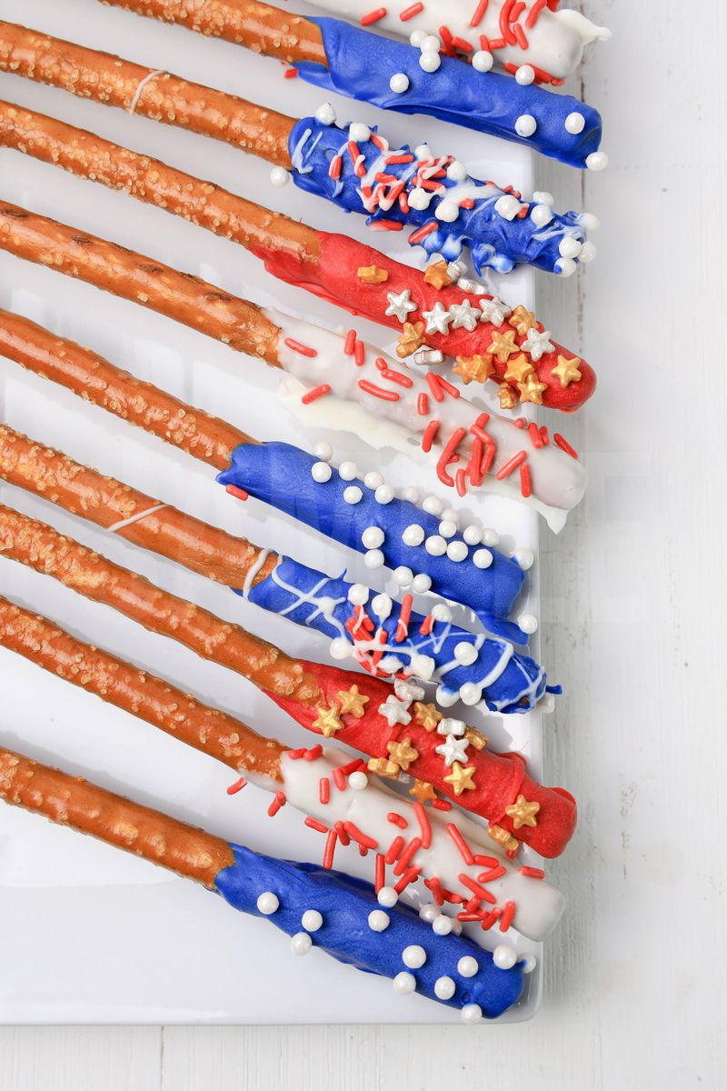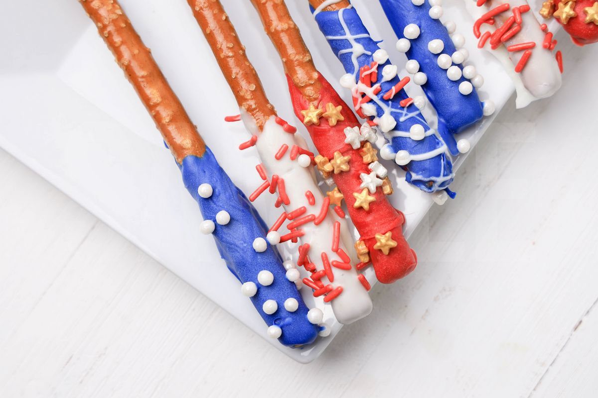 4th Of July Pretzel Rods is made with pretzel rods, candy melts, and sprinkles. This is a semi exclusive recipe. The 4th Of July Pretzel Rods comes on a white plate with a white wood backdrop. Set comes with 16 in process (in process are the same for all sets) and 18 final shots (finals are different for each set) along with recipe in text format. Both vertical and horizontal shots are available for social media. One set of four. Sample removed on finals.