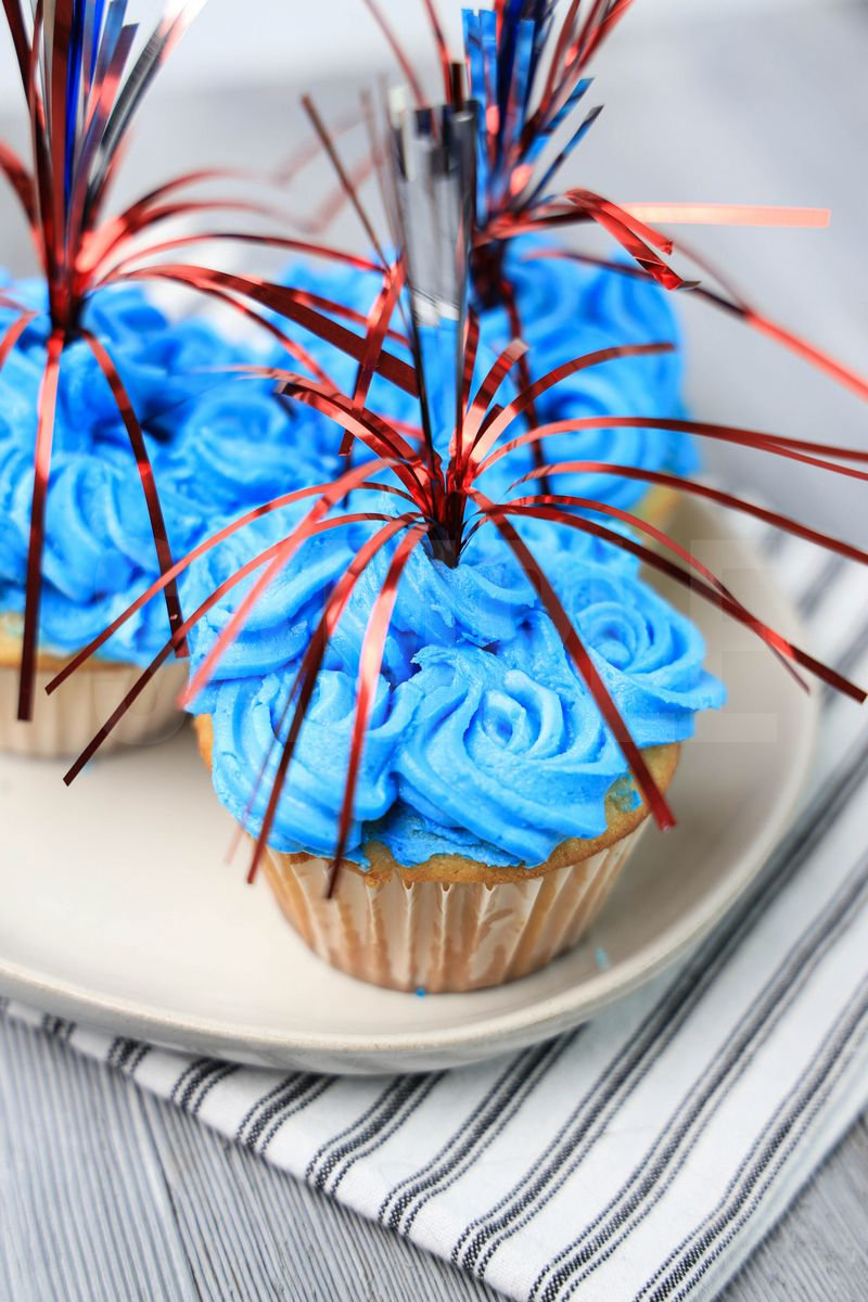 4th Of July Sparkler Cupcakes is made with powdered sugar, flour, and eggs. This is a semi exclusive recipe. The 4th Of July Sparkler Cupcakes comes on a white striped napkin on a gray wood backdrop. Set comes with 6 in process (in process are the same for all sets) and 19 final shots (finals are different for each set) along with recipe in text format. Both vertical and horizontal shots are available for social media. One set of four. Sample removed on finals.