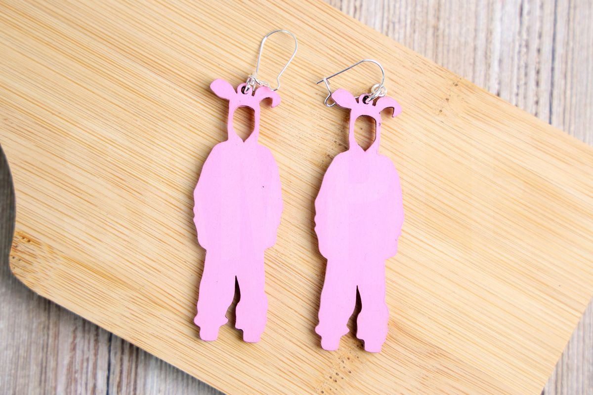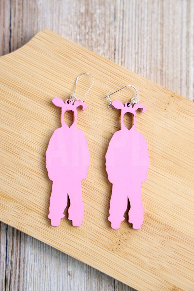 A Christmas Story Bunny Earrings xTool M1 Craft Exclusive made with basswood, svg file, and pink paint. This is a exclusive craft. The A Christmas Story Bunny Earrings xTool M1 Craft Exclusive comes on a rustic wood. Set comes with 9 in process, 3 tutorial screenshots, and 14 final shots along with tutorial in text format and image. Both vertical and horizontal shots are available for social media. Sample removed on finals.