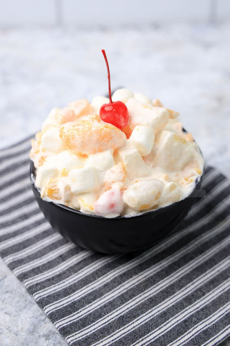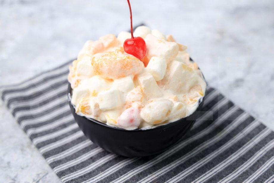 Ambrosia Salad is made with peaches, pineapple, and fruit cocktail. This is a semi exclusive recipe. The Ambrosia comes in a black bowl with a gray striped napkin on a marble backdrop. Set comes with 9 in process (in process are the same for all sets) and 20 final shots (finals are different for each set) along with recipe in text format. Both vertical and horizontal shots are available for social media. One set of four. Sample removed on finals.