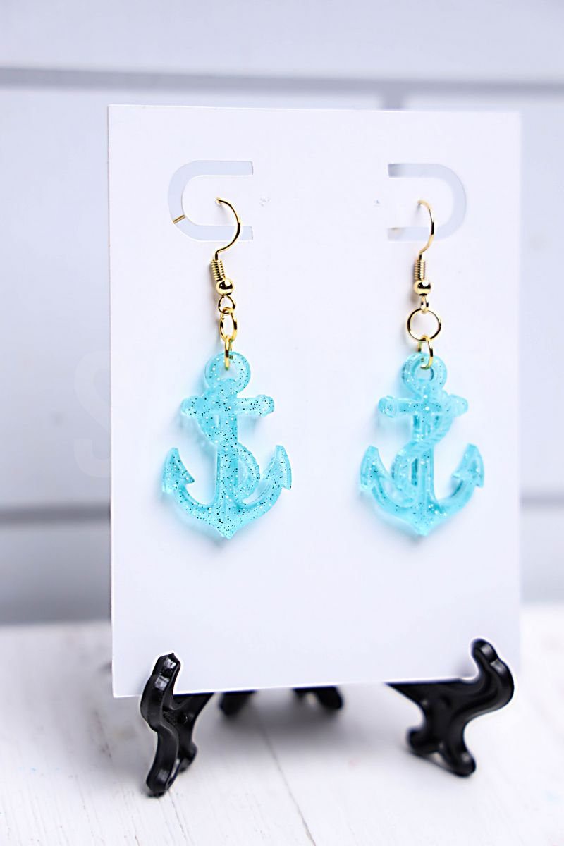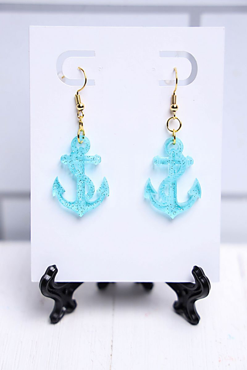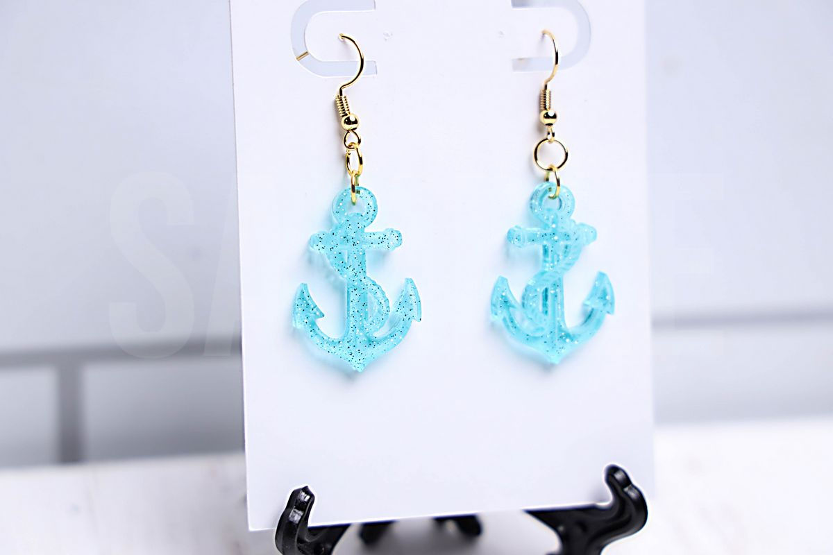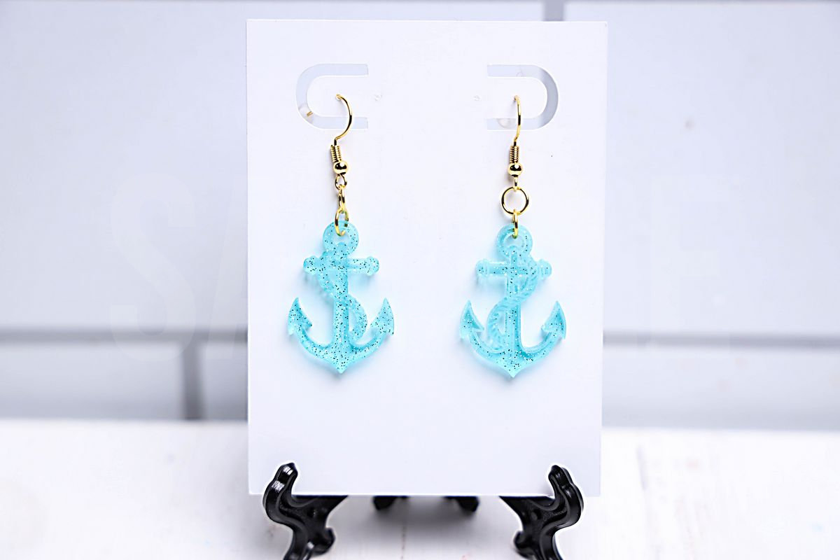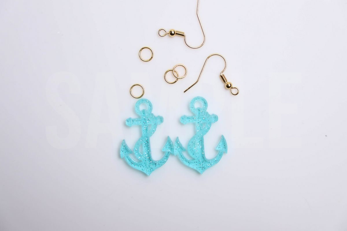 Anchor Earrings is made with acrylic, laser machine, and earring parts. This is a semi exclusive craft. The Anchor Earrings comes on a white card with a white wood backdrop. Set comes with 15 in process and 11 final shots (all in process sets in semi exclusive are the same) along with SVG and tutorial in text format. Both vertical and horizontal shots are available for social media. One set of two. Sample removed on finals.