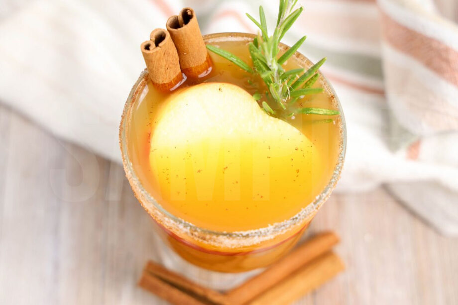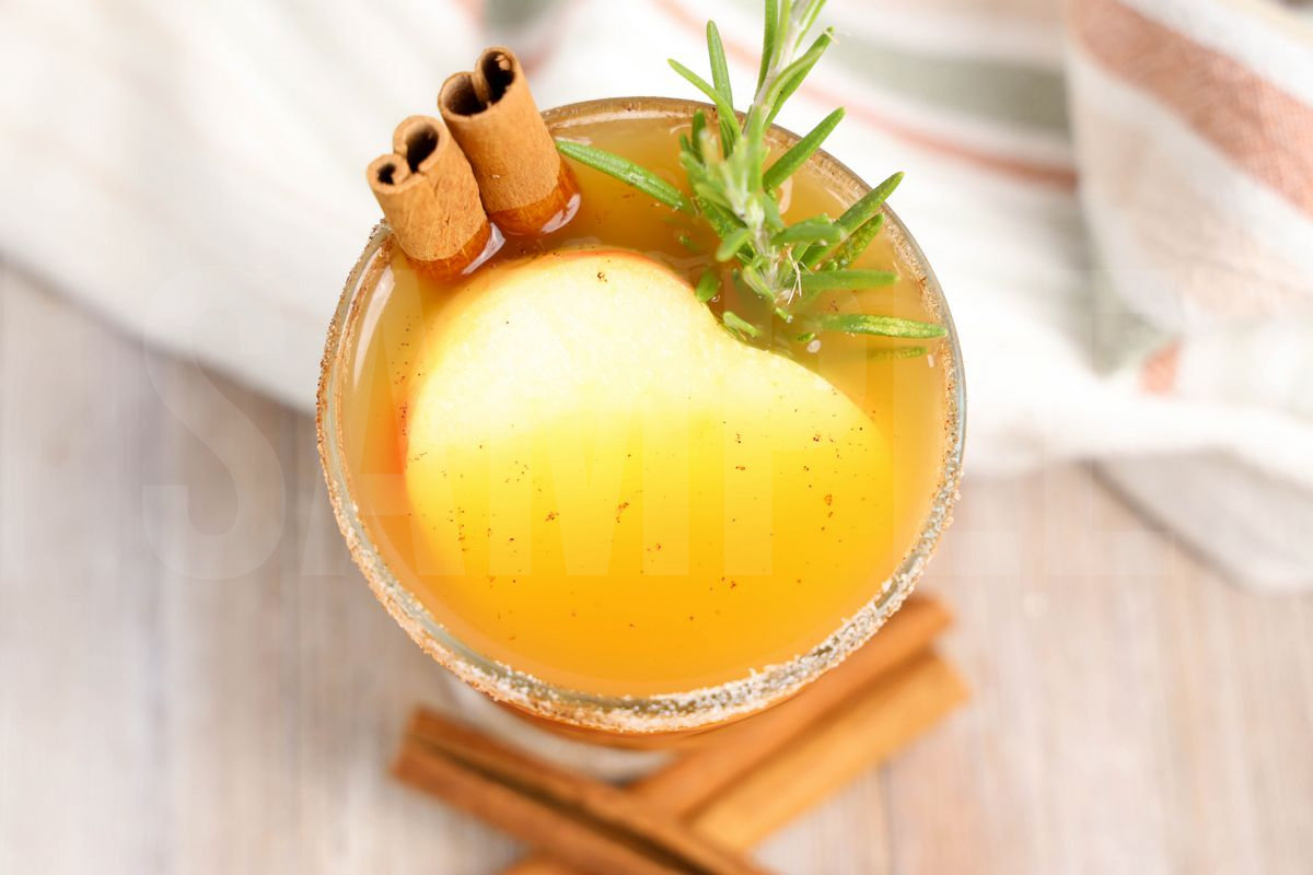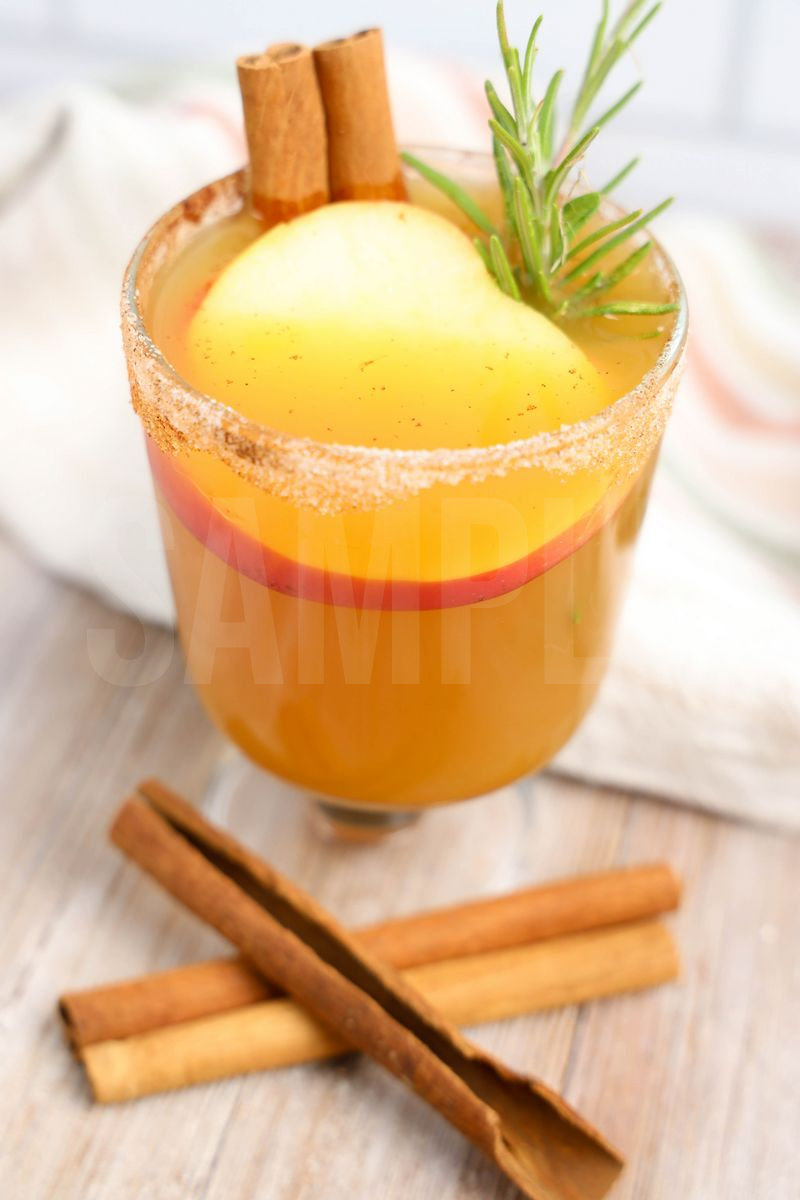 Apple Cider Bourbon Smash is made with apple cider, apple Jim Beam, fresh apple, orange juice, cinnamon sugar and rosemary. This is a semi exclusive recipe. The Apple Cider Bourbon Smash comes in a glass on a rustic wood backdrop. Set comes with 7 in process (in process are the same for all sets) and 17 final shots (finals are different for each set) along with recipe in text format. Both vertical and horizontal shots are available for social media. One set of four. Sample removed on finals.