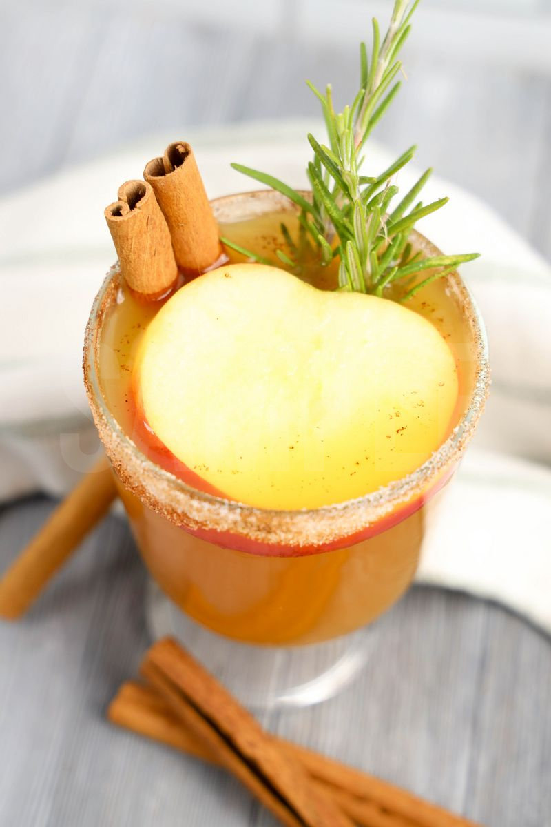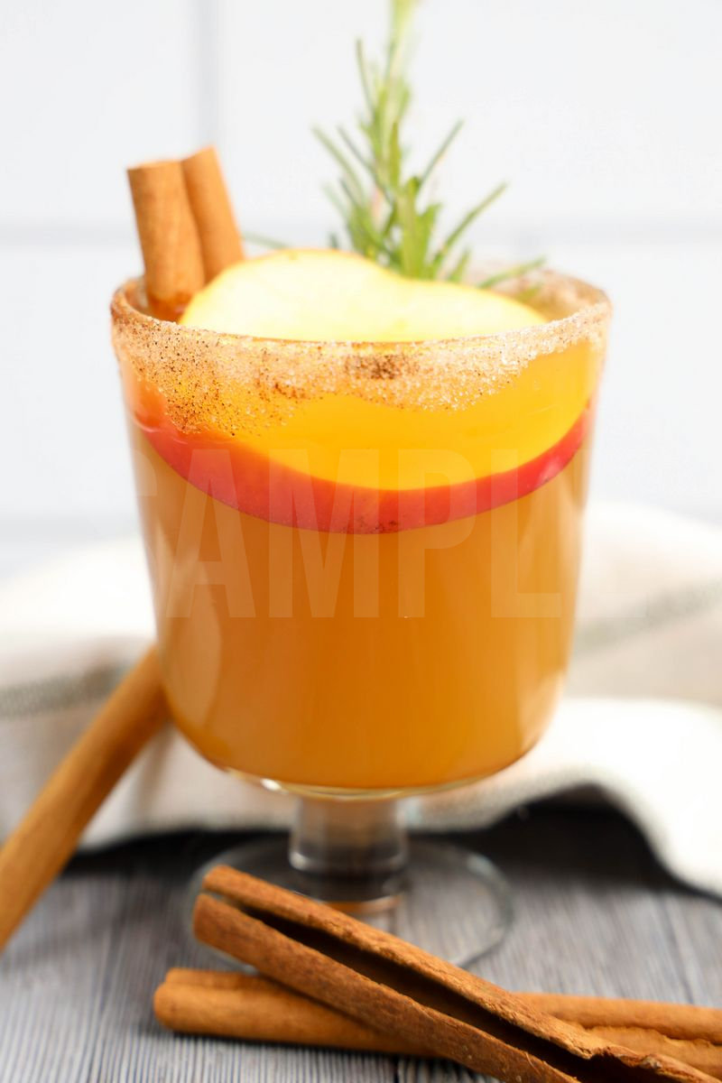 Apple Cider Bourbon Smash is made with apple cider, apple Jim Beam, fresh apple, orange juice, cinnamon sugar and rosemary. This is a semi exclusive recipe. The Apple Cider Bourbon Smash comes in a glass on a gray wood backdrop. Set comes with 7 in process (in process are the same for all sets) and 18 final shots (finals are different for each set) along with recipe in text format. Both vertical and horizontal shots are available for social media. One set of four. Sample removed on finals.