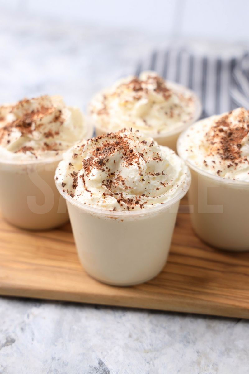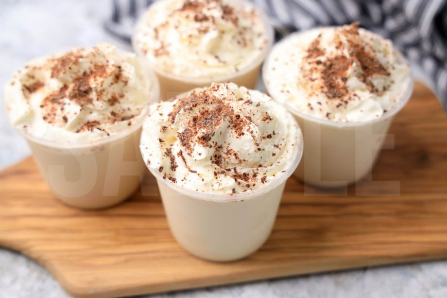 Bailey’s Irish Cream Jello Shots is made with clear gelatin, sweetened condensed milk, and Bailey’s Irish cream. This is a semi exclusive recipe. The Bailey’s Irish Cream Jello Shots comes in a clear jello shot cup with a gray striped napkin on a marble backdrop. Set comes with 10 in process (in process are the same for all sets) and 17 final shots (finals are different for each set) along with recipe in text format. Both vertical and horizontal shots are available for social media. One set of four. Sample removed on finals.