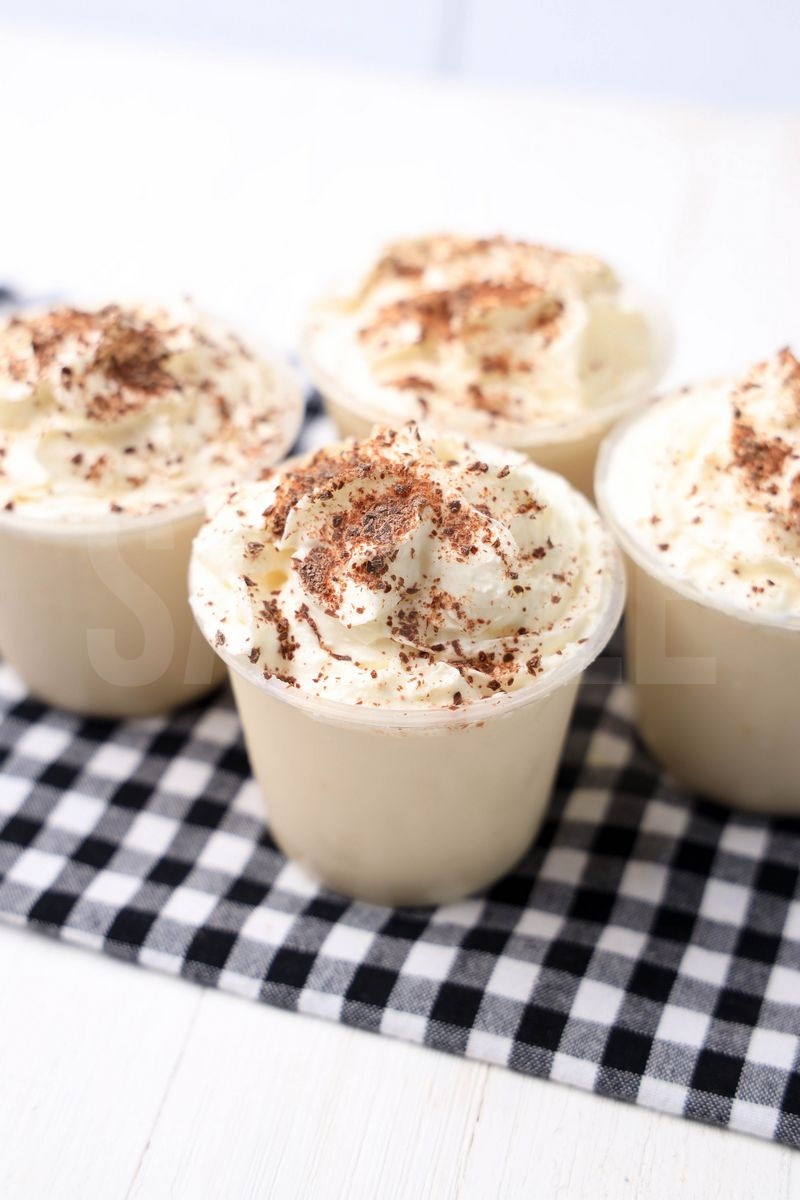 Bailey’s Irish Cream Jello Shots is made with clear gelatin, sweetened condensed milk, and Bailey’s Irish cream. This is a semi exclusive recipe. The Bailey’s Irish Cream Jello Shots comes in a clear jello shot cup with a plaid napkin on a white wood backdrop. Set comes with 10 in process (in process are the same for all sets) and 19 final shots (finals are different for each set) along with recipe in text format. Both vertical and horizontal shots are available for social media. One set of four. Sample removed on finals.