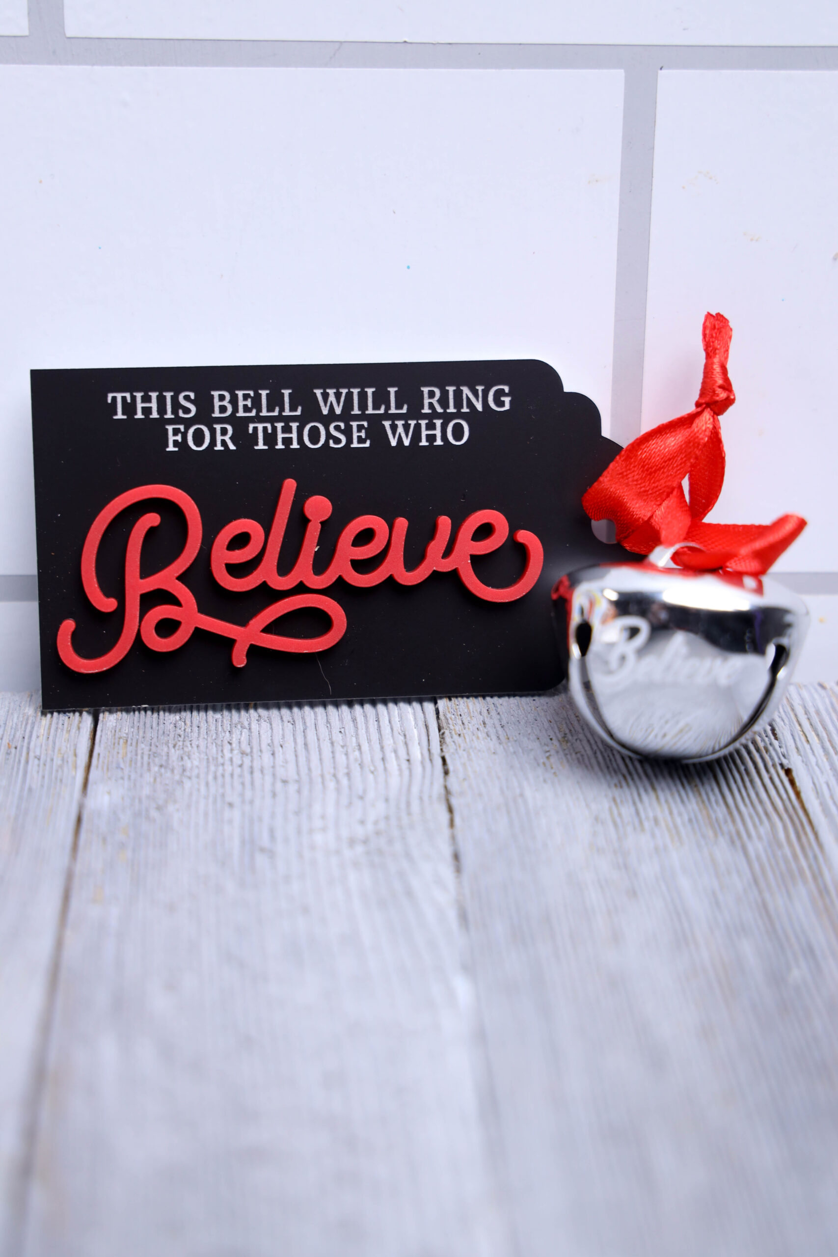 Believe Bell Exclusive made with acrylic and svg. This is a exclusive craft. The Believe Bell Exclusive on a gray wood backdrop. Set comes with 12 in process and 14 final shots along with tutorial in text format and videos already sent. Both vertical and horizontal shots are available for social media. Sample removed on finals.