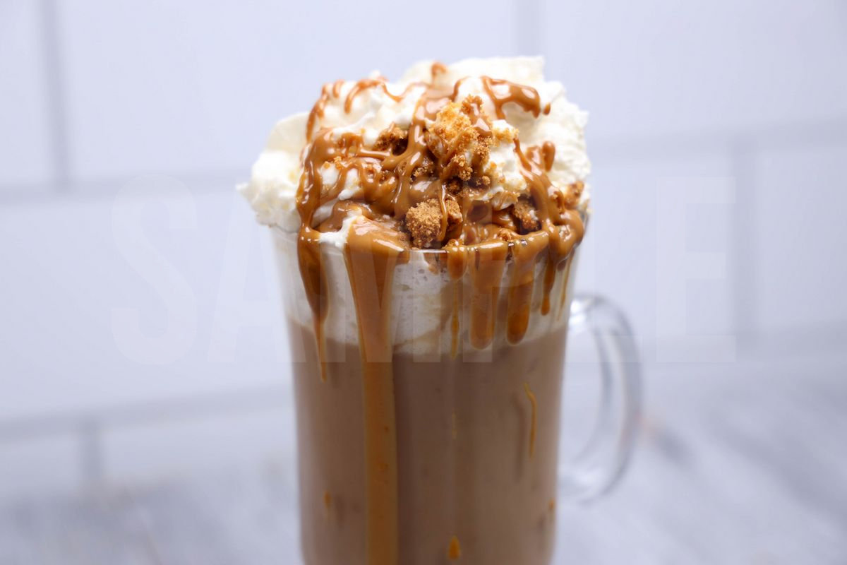 Biscoff Hot Chocolate is made with milk, biscoff spread, biscoff cookies, Hershey’s simply 5, and whipped topping. This is a semi exclusive recipe. The Biscoff Hot Chocolate comes in a glass with a gray wood backdrop. Set comes with 9 in process (in process are the same for all sets) and 16 final shots (finals are different for each set) along with recipe in text format. Both vertical and horizontal shots are available for social media. One set of four. Sample removed on finals.