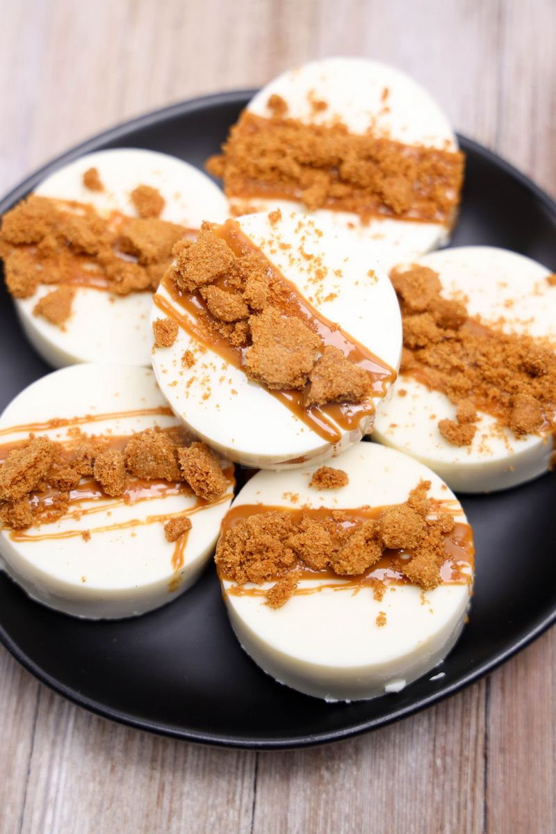 Biscoff Ritz Cookies is made with biscoff cookies, Ghriradelli’s white chocolate, and biscoff cookie butter. This is a semi exclusive recipe. The Biscoff Ritz Cookies comes on a black plate with a rustic wood backdrop. Set comes with 10 in process (in process are the same for all sets) and 16 final shots (finals are different for each set) along with recipe in text format. Both vertical and horizontal shots are available for social media. One set of four. Sample removed on finals.