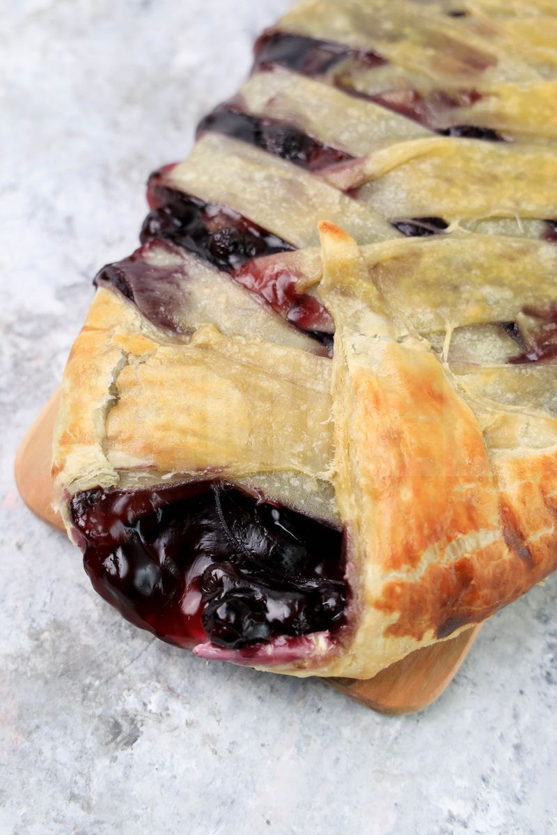 Blueberry Puff Pastry Braid is made with cream cheese, strawberry filling, and puff pastry. This is a semi exclusive recipe. The Blueberry Puff Pastry Braid comes on a olive wood board on a marble backdrop. Set comes with 7 in process (in process are the same for all sets) and 17 final shots (finals are different for each set) along with recipe in text format. Both vertical and horizontal shots are available for social media. One set of four. Sample removed on finals.