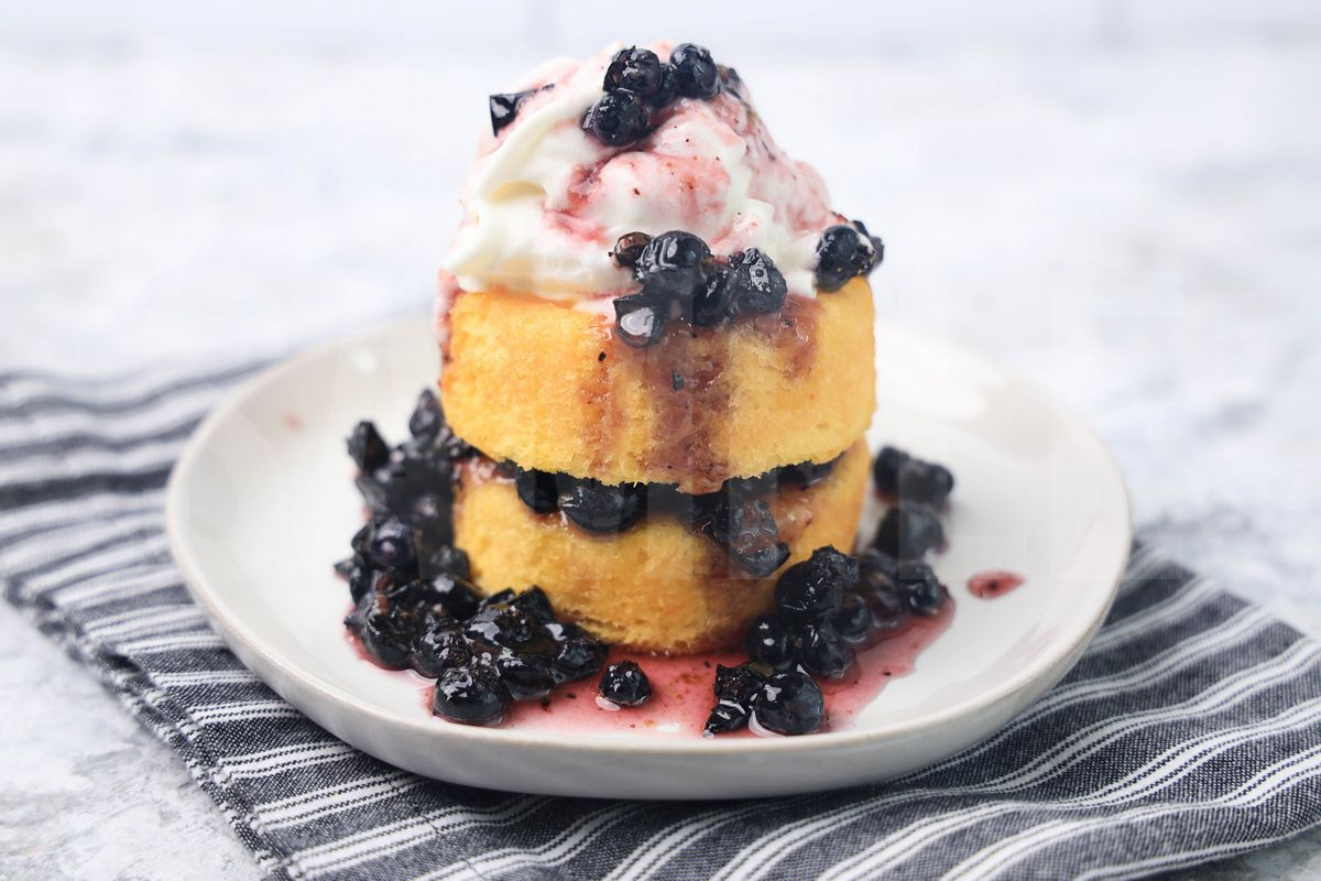 Blueberry Shortcake is made with blueberries, dessert shells, and whipped topping. This is a semi exclusive recipe. The Blueberry Shortcake comes on a white plate with a gray striped napkin on a marble backdrop. Set comes with 12 in process (in process are the same for all sets) and 17 final shots (finals are different for each set) along with recipe in text format. Both vertical and horizontal shots are available for social media. One set of four. Sample removed on finals.