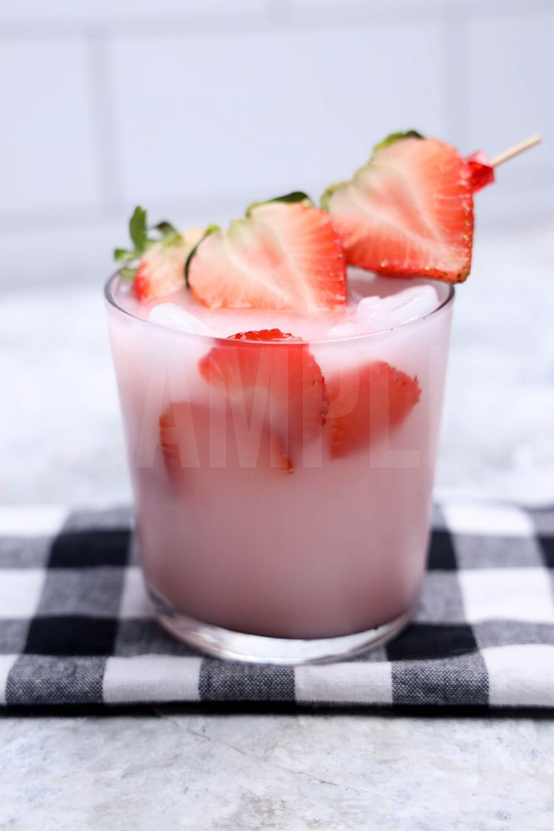 Boozy Pink Drink is made with pink drink, vodka, and fresh strawberries. This is a semi exclusive recipe. The Boozy Pink Drink comes in a glass on a marble wood backdrop. Set comes with 9 in process (in process are the same for all sets) and 15 final shots (finals are different for each set) along with recipe in text format. Both vertical and horizontal shots are available for social media. One set of four. Sample removed on finals.