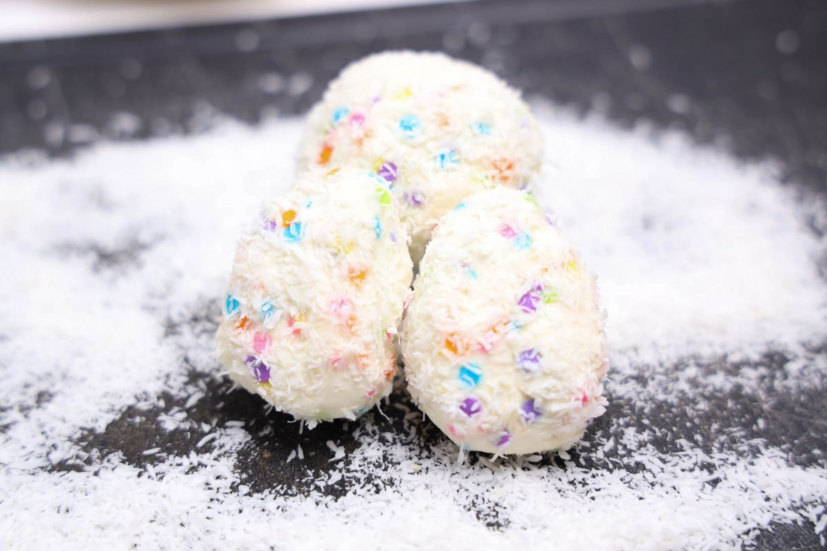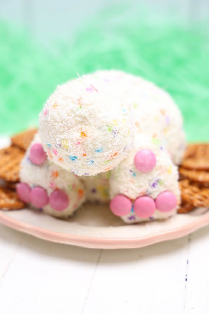 Bunny Butt Coconut Cheese Ball is made with shredded coconut, cream cheese, sprinkles, and honey. This is a semi exclusive recipe. The Bunny Butt Coconut Cheese Ball comes in a white plate on a white wood backdrop. Set comes with 19 in process (in process are the same for all sets) and 17 final shots (finals are different for each set) along with recipe in text format. Both vertical and horizontal shots are available for social media. One set of four. Sample removed on finals.