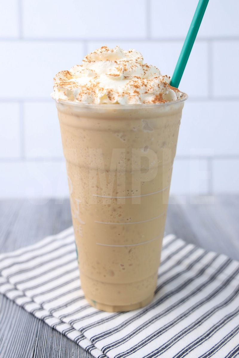Chai Crème Frappuccino is made with chai concentrate, heavy whipping cream, and ice. This is a semi exclusive recipe. The Chai Crème Frappuccino comes in a venti cup with a white striped napkin on a gray wood backdrop. Set comes with 12 in process (in process are the same for all sets) and 14 final shots (finals are different for each set) along with recipe in text format. Both vertical and horizontal shots are available for social media. One set of four. Sample removed on finals.