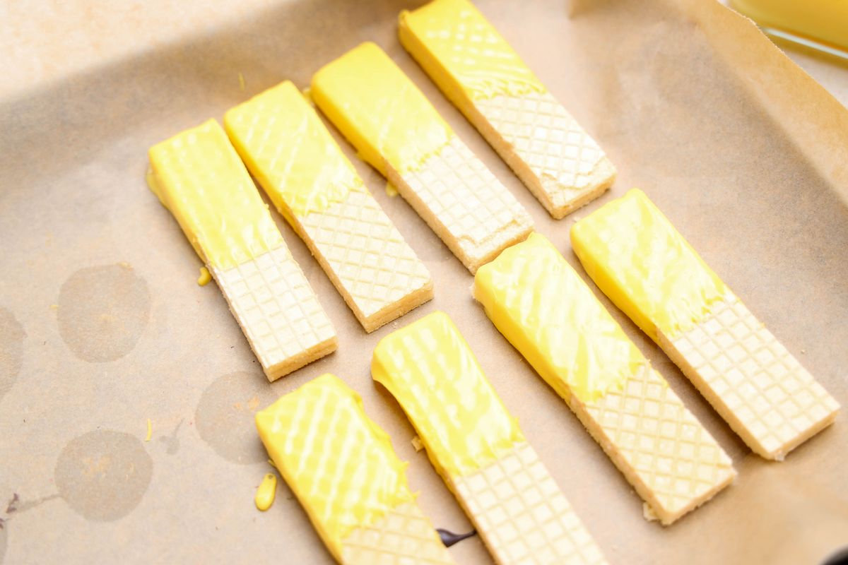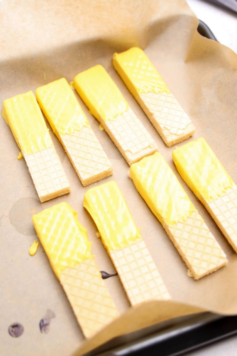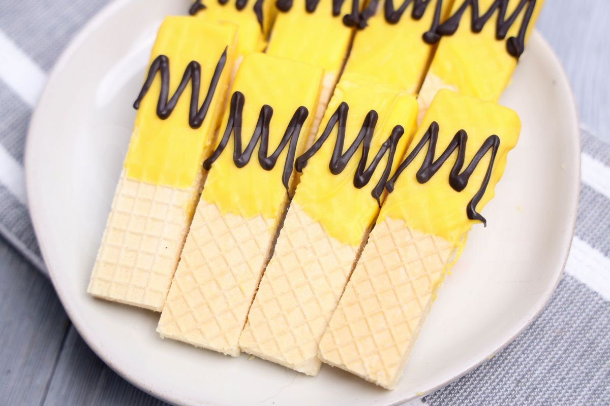 Charlie Brown Wafers is made with vanilla wafers, yellow candy melts, and black candy melts. This is a semi exclusive recipe. The Charlie Brown Wafers comes on a white plate with a gray wood backdrop. Set comes with 7 in process (in process are the same for all sets) and 17 final shots (finals are different for each set) along with recipe in text format. Both vertical and horizontal shots are available for social media. One set of four. Sample removed on finals.