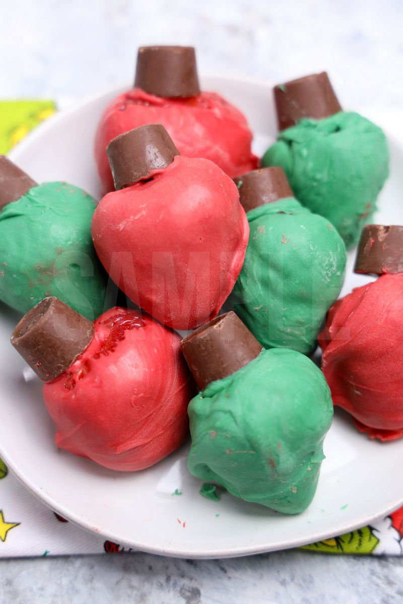 Christmas Light Strawberries is made with strawberries, rollo’s, green candy melts, and red candy melts. This is a semi exclusive recipe. The Christmas Light Strawberries comes on a white plate with a marble wood backdrop. Set comes with 9 in process (in process are the same for all sets) and 16 final shots (finals are different for each set) along with recipe in text format. Both vertical and horizontal shots are available for social media. One set of four. Sample removed on finals.