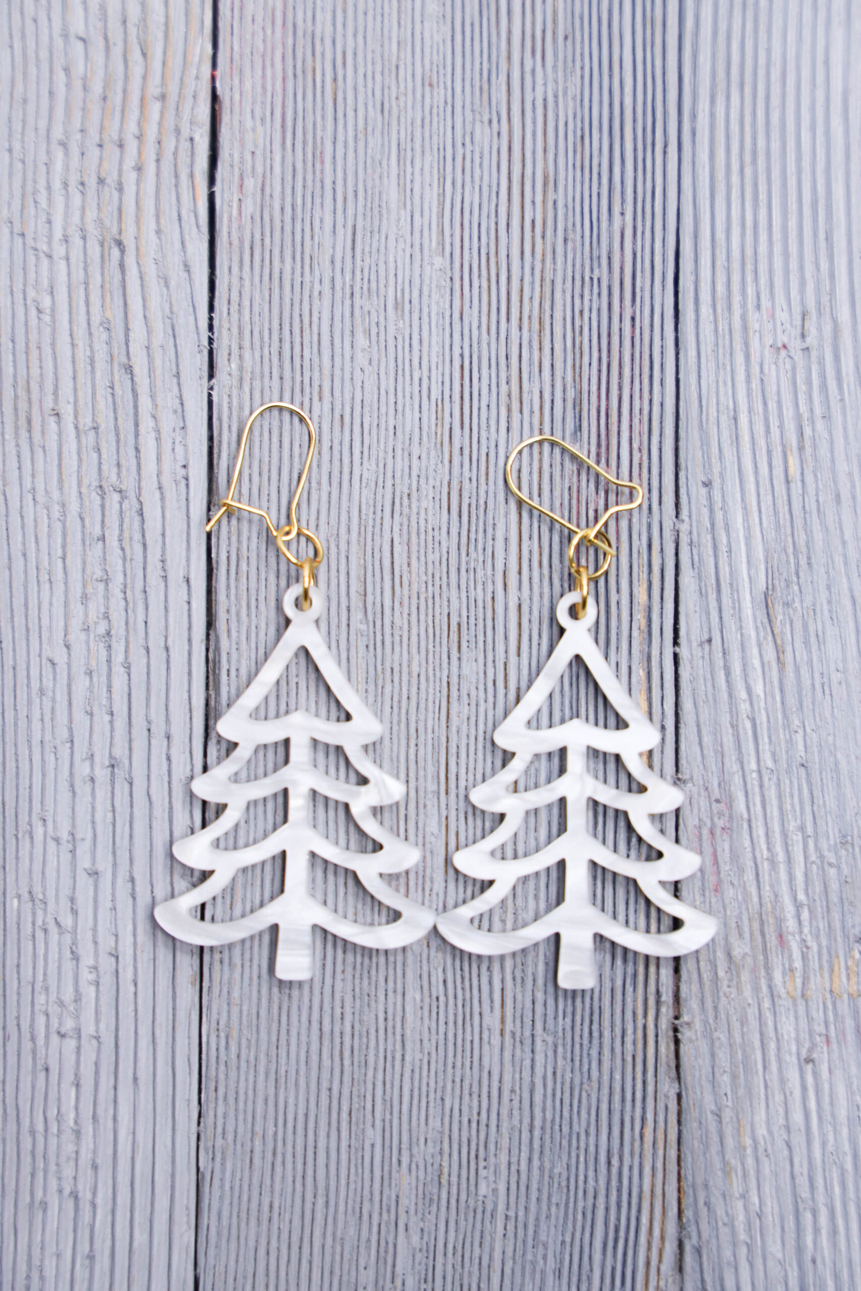 Christmas Tree Earrings Exclusive made with acrylic and svg. This is a exclusive craft. The Christmas Tree Earrings Exclusive on a gray wood backdrop. Set comes with 8 in process and 14 final shots along with tutorial in text format and videos already sent. Both vertical and horizontal shots are available for social media. Sample removed on finals.