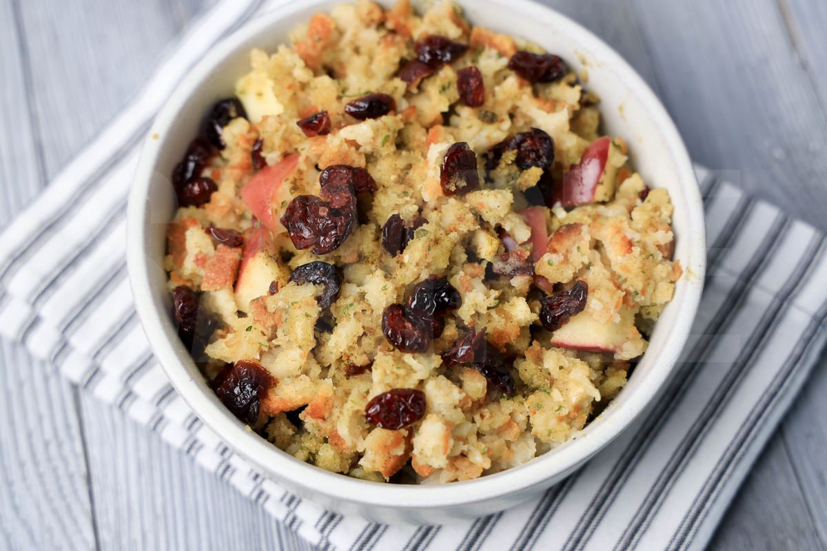 Cranapple Stuffing is made with stuffing, red apples, and dried cranberries. This is a semi exclusive recipe. The Cranapple Stuffing comes in a white bowl with a white striped napkin on a gray wood backdrop. Set comes with 6 in process (in process are the same for all sets) and 17 final shots (finals are different for each set) along with recipe in text format. Both vertical and horizontal shots are available for social media. One set of four. Sample removed on finals.
