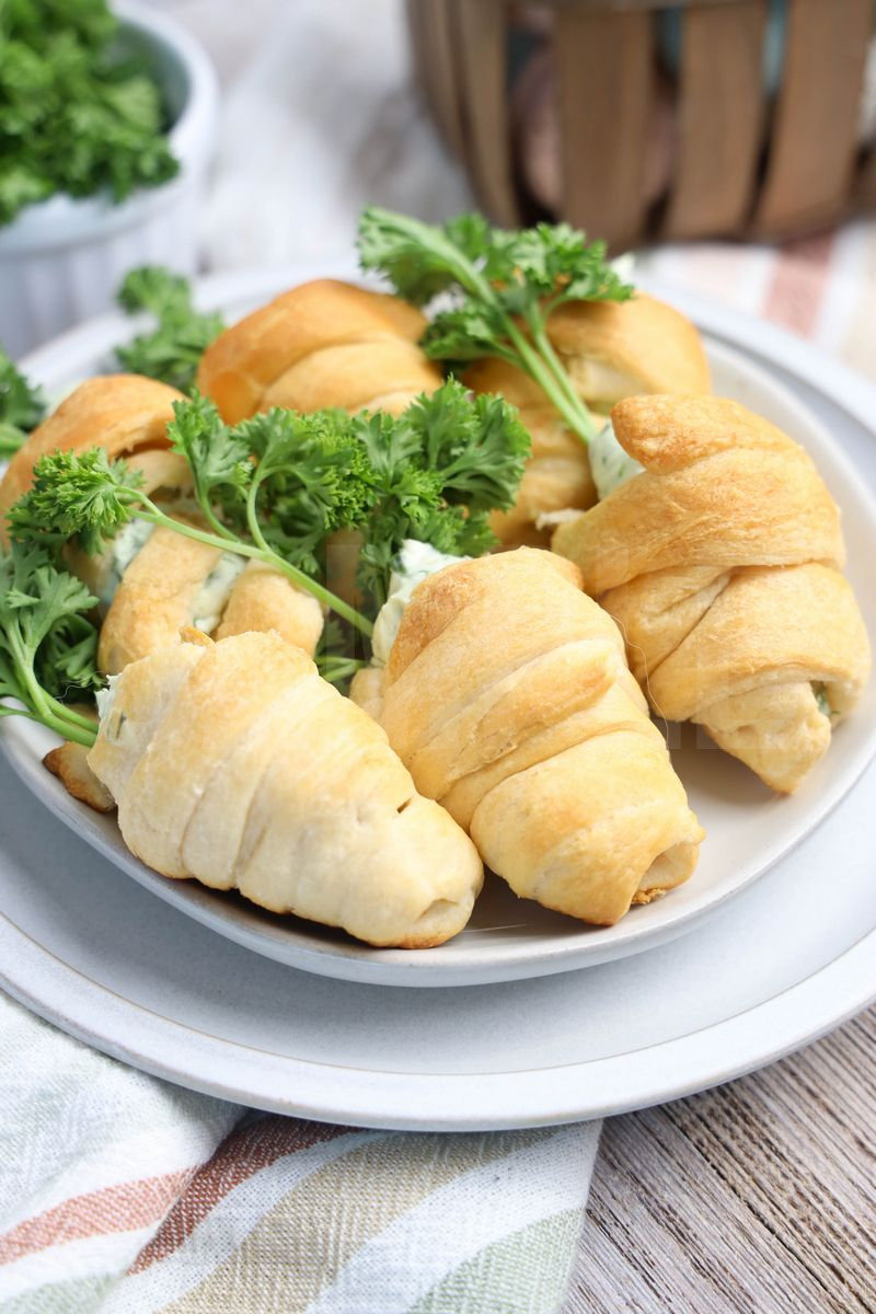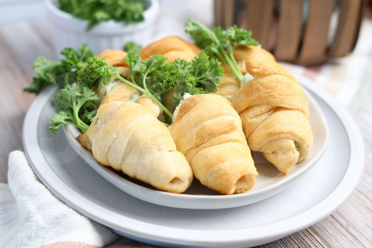 Creamy Spinach Carrot Crescents is made with cream cheese, spinach, garlic, dill, parsley, and crescent dough. This is a semi exclusive recipe. The Creamy Spinach Carrot Crescents comes on a white plate with a rainbow striped cloth on a rustic wood backdrop. Set comes with 12 in process (in process are the same for all sets) and 26 final shots (finals are different for each set) along with recipe in text format. Both vertical and horizontal shots are available for social media. One set of four. Sample removed on finals.