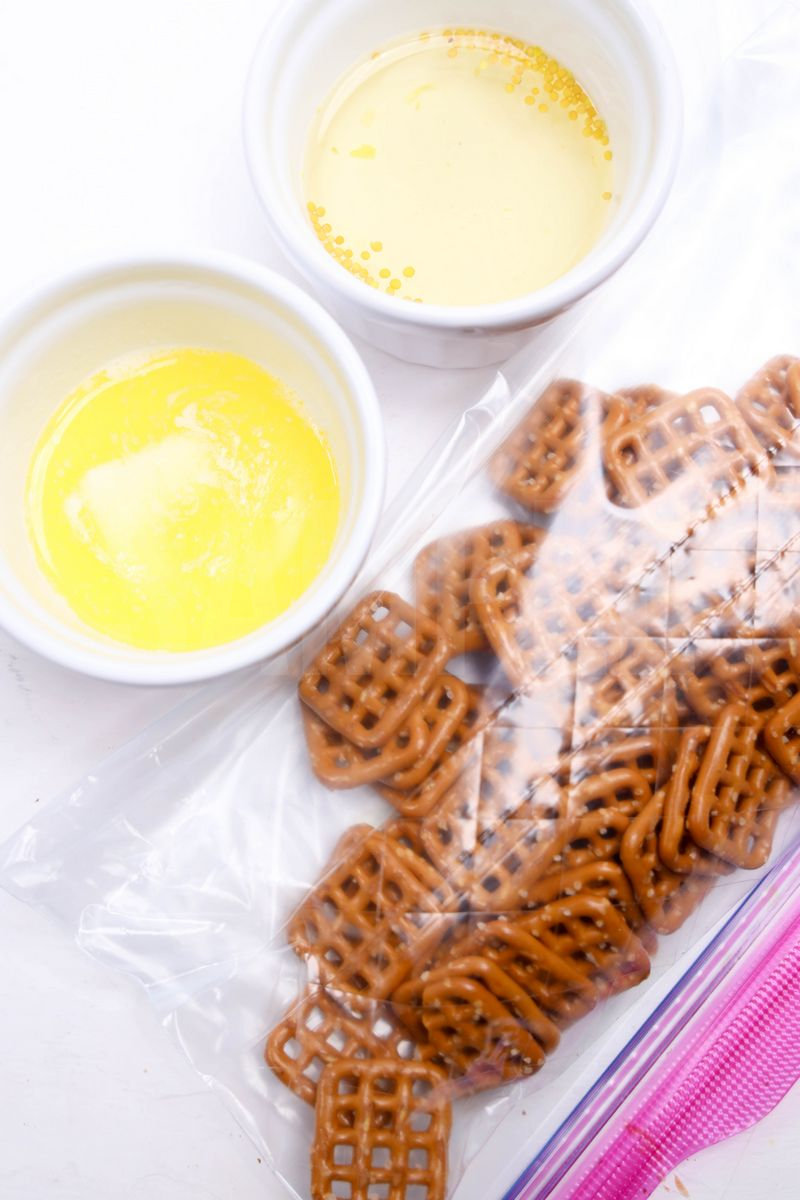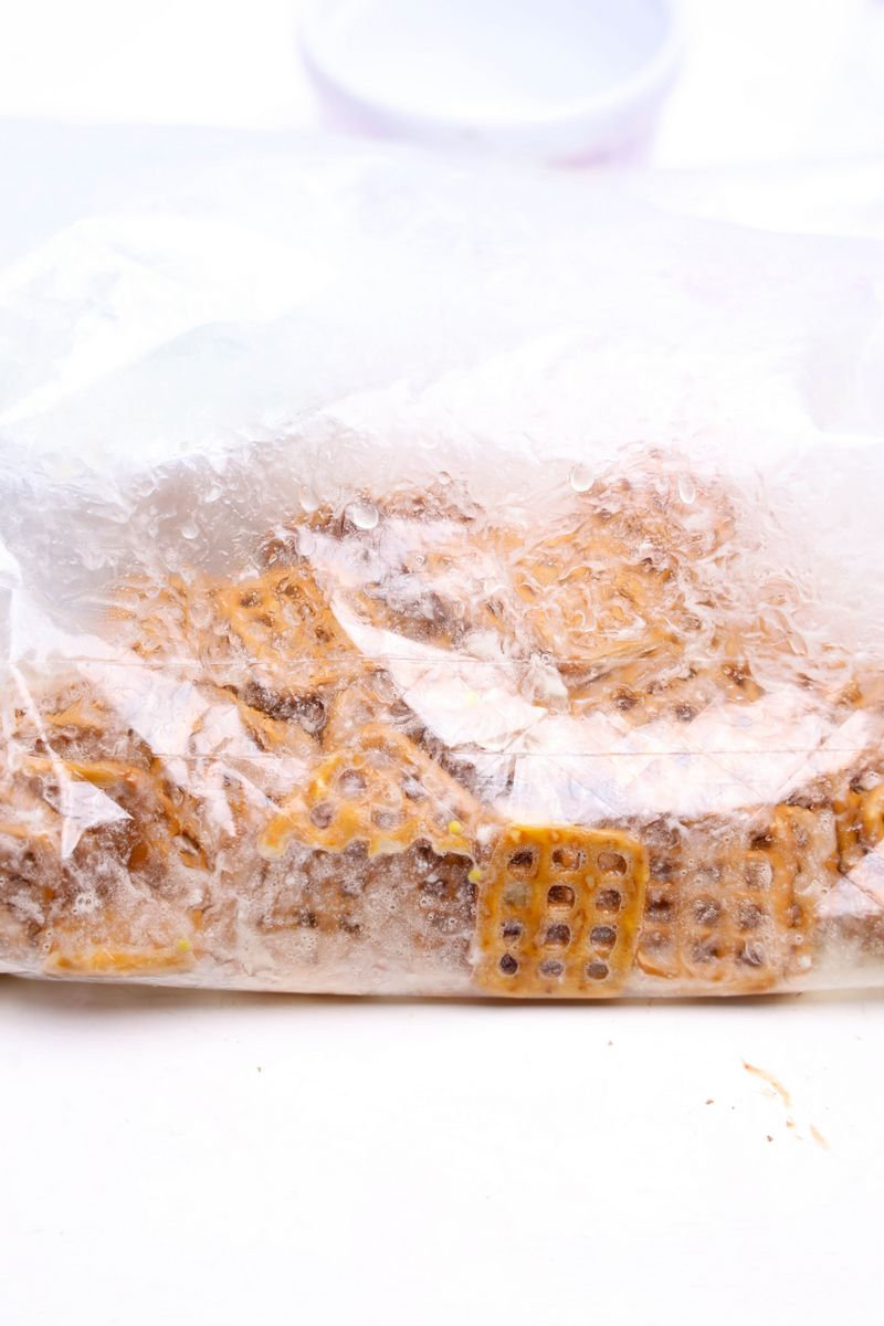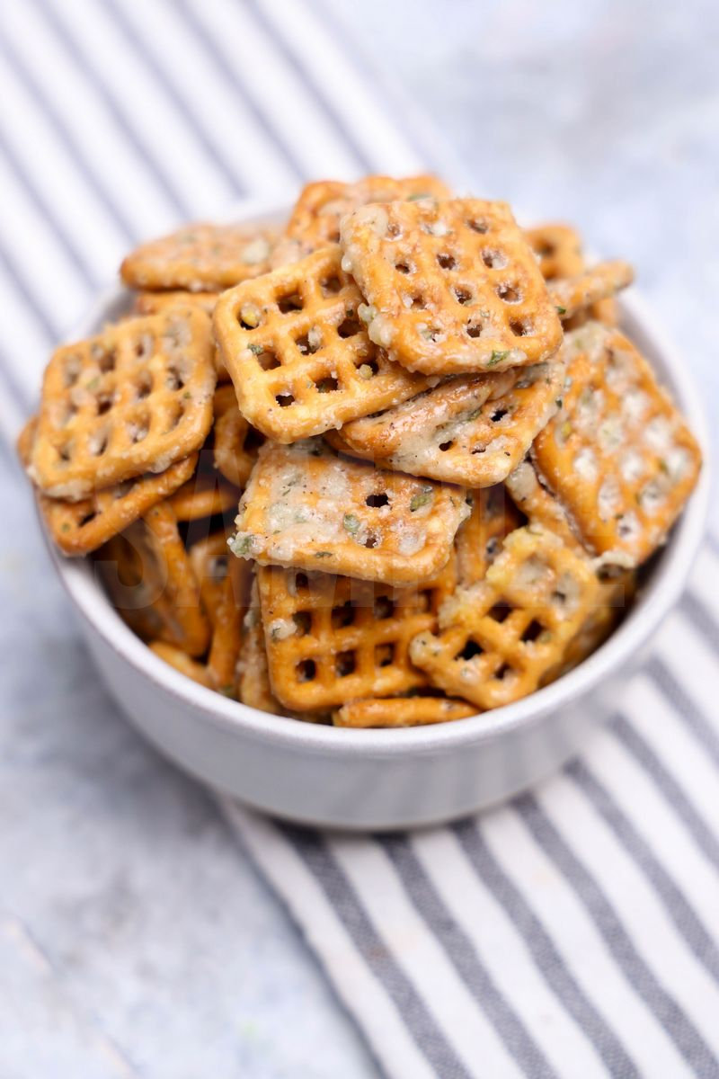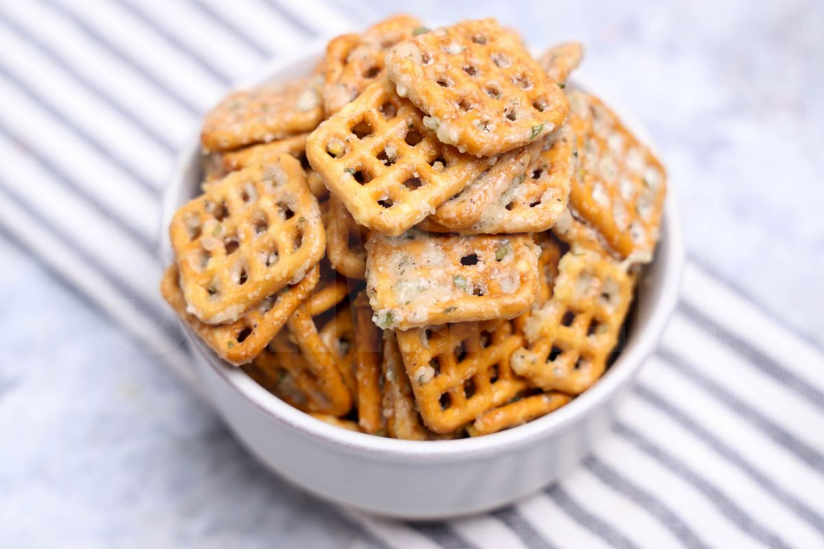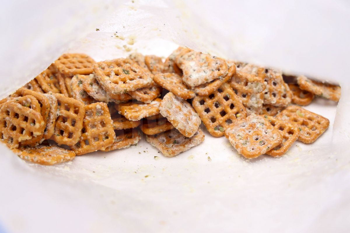 Dill Ranch Pretzels is made with ranch seasoning, butter, pickle juice, and pretzels. This is a semi exclusive recipe. The Dill Ranch Pretzels comes on a white bowl with a marble wood backdrop. Set comes with 8 in process (in process are the same for all sets) and 17 final shots (finals are different for each set) along with recipe in text format. Both vertical and horizontal shots are available for social media. One set of four. Sample removed on finals.