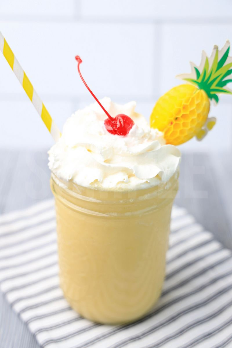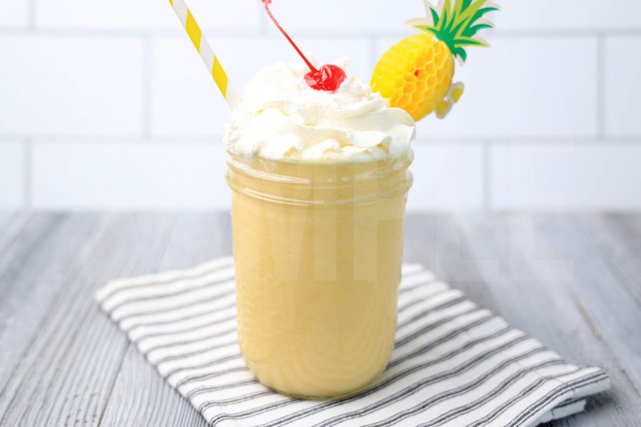 Dole Whip Pineapple Milkshake is made with frozen pineapple, ice cream, and pineapple juice. This is a semi exclusive recipe. The Dole Whip Pineapple Milkshake comes in a glass jar on a white striped napkin on a gray wood backdrop. Set comes with 10 in process (in process are the same for all sets) and 16 final shots (finals are different for each set) along with recipe in text format. Both vertical and horizontal shots are available for social media. One set of four. Sample removed on finals.