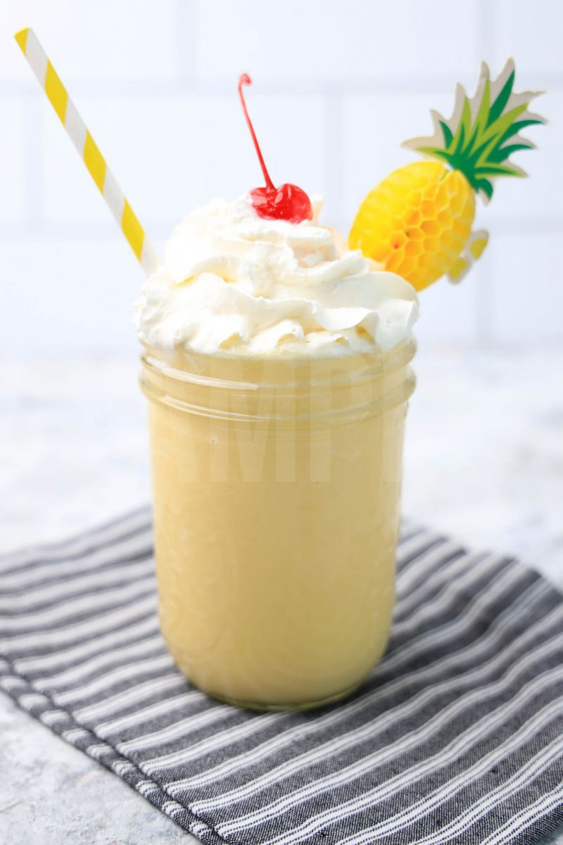 Dole Whip Pineapple Milkshake is made with frozen pineapple, ice cream, and pineapple juice. This is a semi exclusive recipe. The Dole Whip Pineapple Milkshake comes in a glass jar on a gray striped napkin on a marble backdrop. Set comes with 10 in process (in process are the same for all sets) and 15 final shots (finals are different for each set) along with recipe in text format. Both vertical and horizontal shots are available for social media. One set of four. Sample removed on finals.