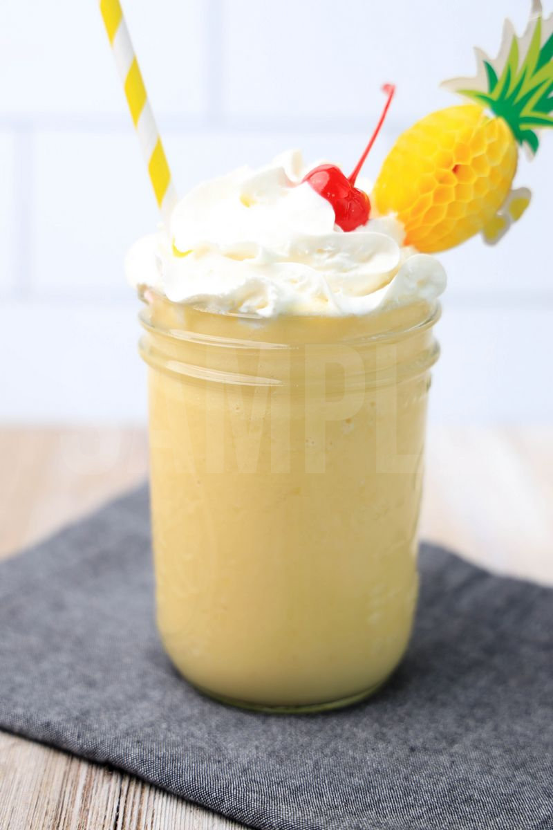 Dole Whip Pineapple Milkshake is made with frozen pineapple, ice cream, and pineapple juice. This is a semi exclusive recipe. The Dole Whip Pineapple Milkshake comes in a glass jar on a denim napkin on a rustic backdrop. Set comes with 10 in process (in process are the same for all sets) and 17 final shots (finals are different for each set) along with recipe in text format. Both vertical and horizontal shots are available for social media. One set of four. Sample removed on finals.