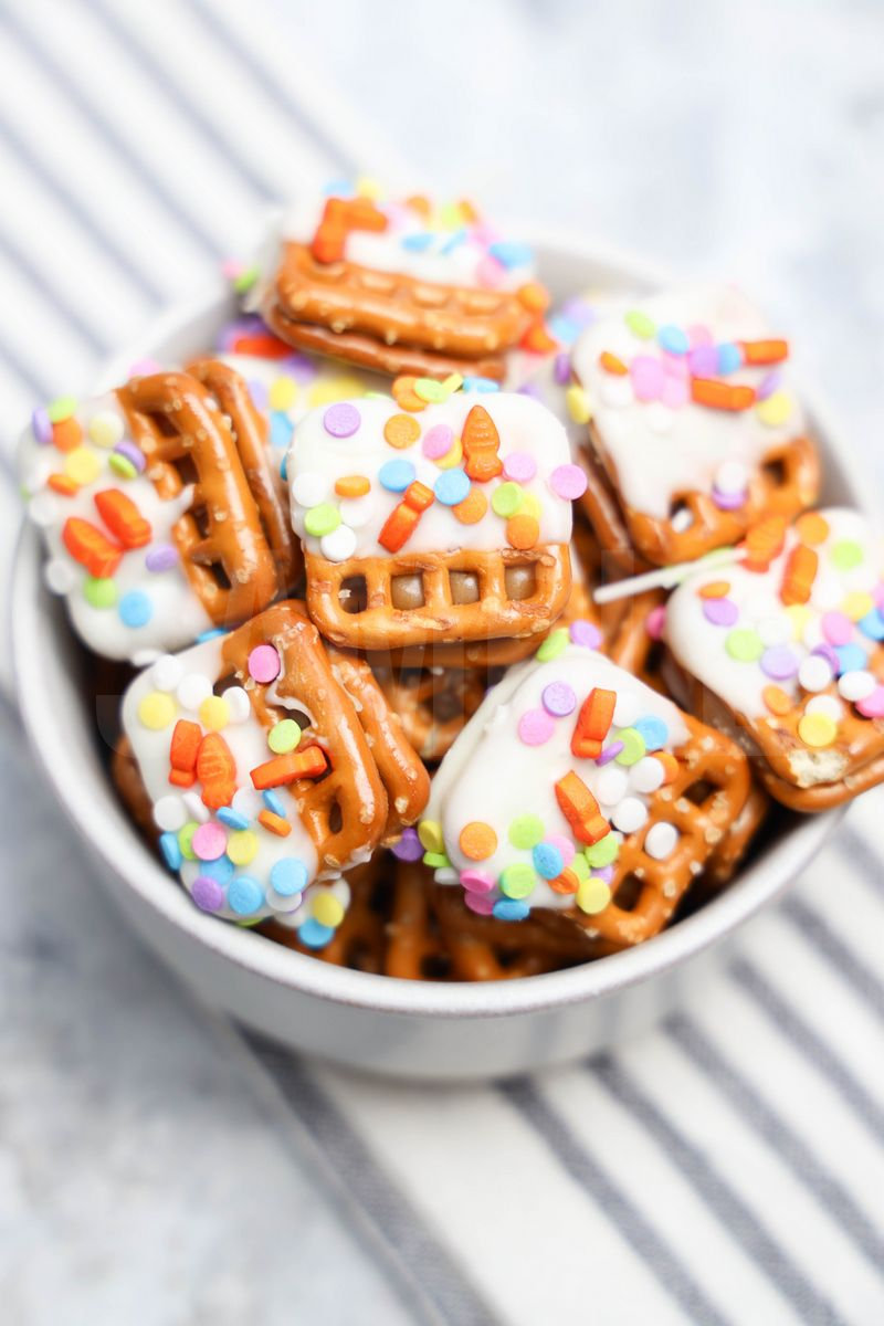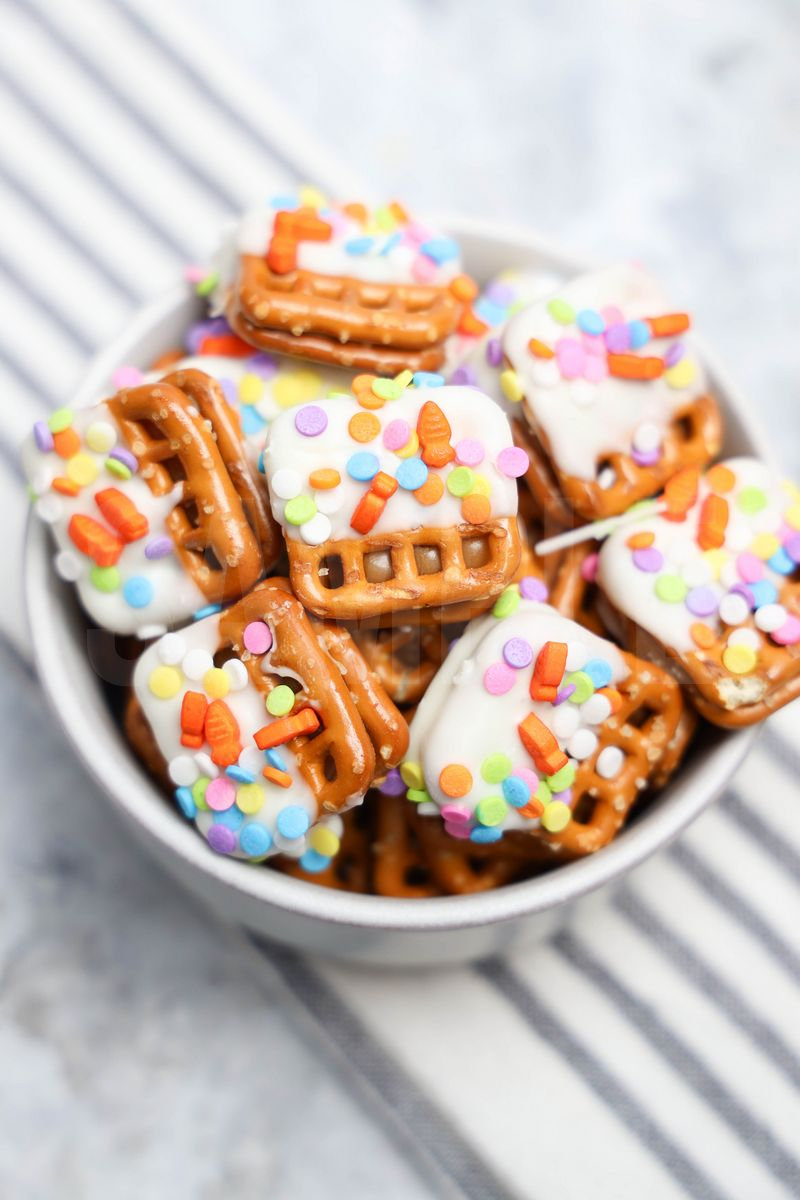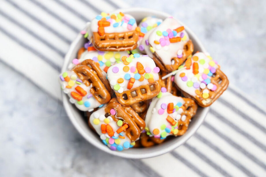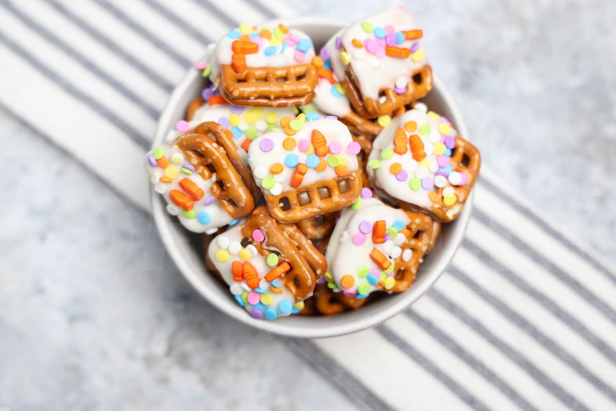 Easter Caramel Pretzels is made with Ghirardelli’s white chocolate, pretzels, sprinkles, and caramel. This is a semi exclusive recipe. The Easter Caramel Pretzels comes in a white bowl on a marble wood backdrop. Set comes with 12 in process (in process are the same for all sets) and 18 final shots (finals are different for each set) along with recipe in text format. Both vertical and horizontal shots are available for social media. One set of four. Sample removed on finals.