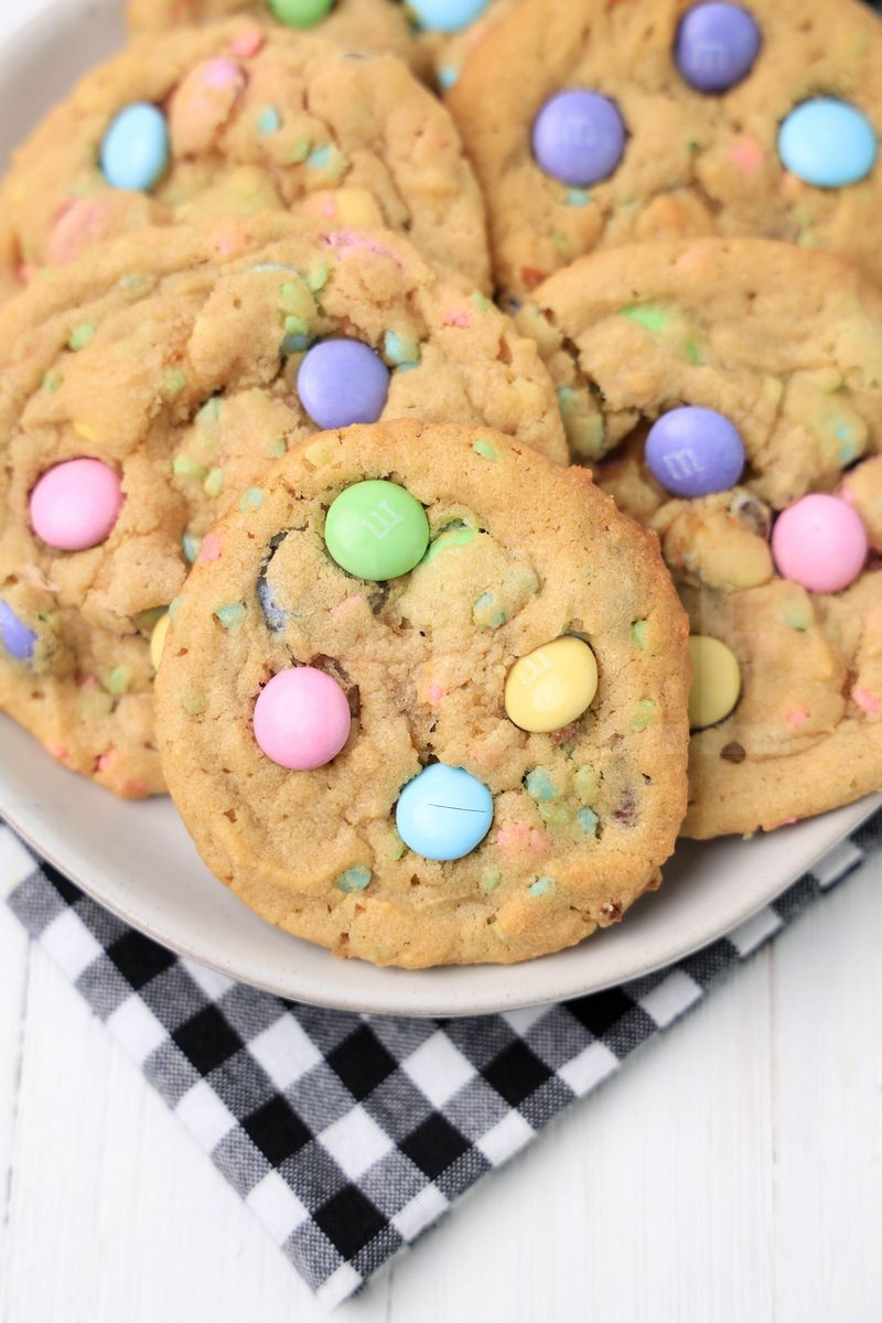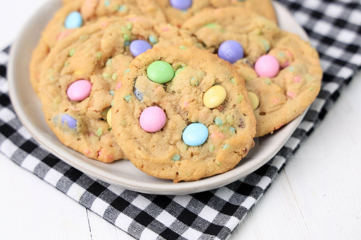 Easter M&M Sprinkle Cookies is made with Easter M&M’s, peanut butter, and sprinkles. This is a semi exclusive recipe. The Easter M&M Sprinkle Cookies comes on a white plate with a plaid napkin on a white wood backdrop. Set comes with 11 in process (in process are the same for all sets) and 16 final shots (finals are different for each set) along with recipe in text format. Both vertical and horizontal shots are available for social media. One set of four. Sample removed on finals.