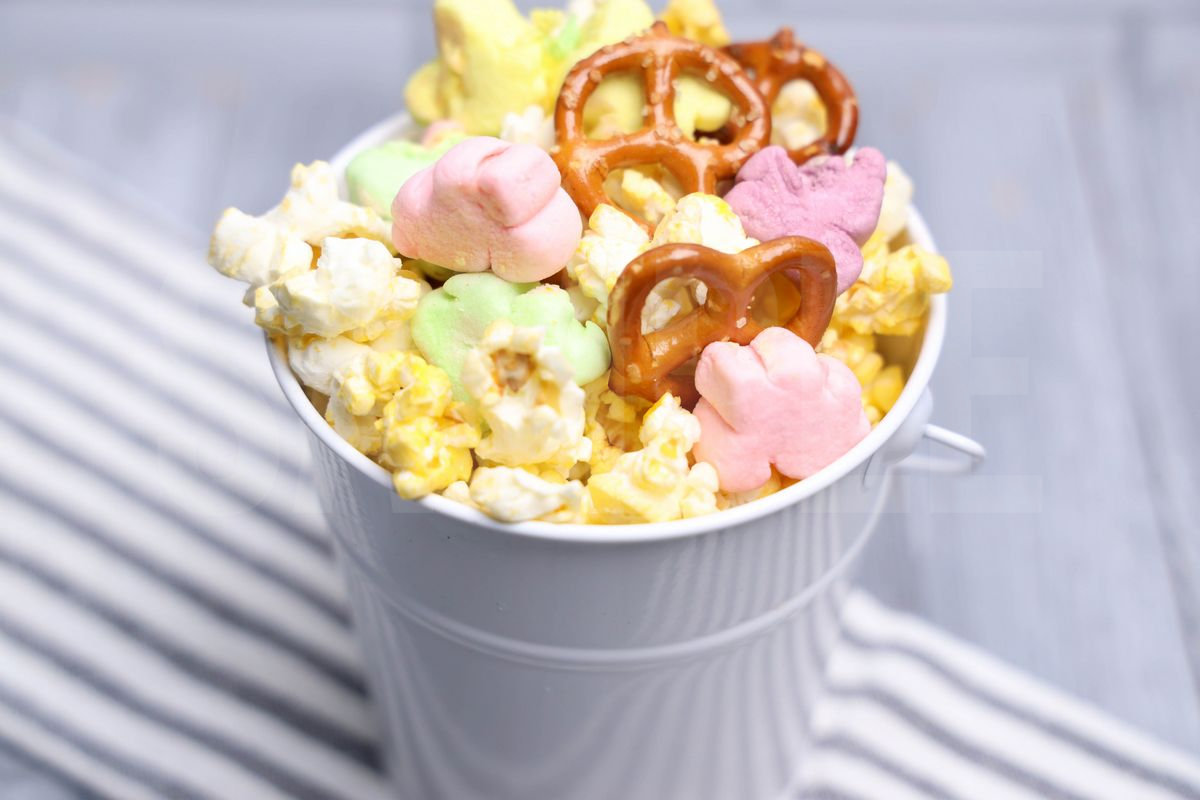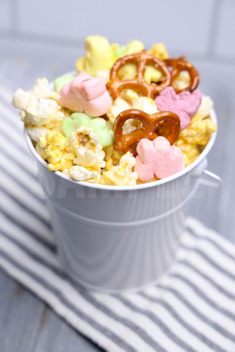 Easter Snack Mix is made with easter marshmallows, pretzels, and popcorn. This is a semi exclusive recipe. The Easter Snack Mix comes on a white pail with a gray wood backdrop. Set comes with 9 in process (in process are the same for all sets) and 16 final shots (finals are different for each set) along with recipe in text format. Both vertical and horizontal shots are available for social media. One set of four. Sample removed on finals.