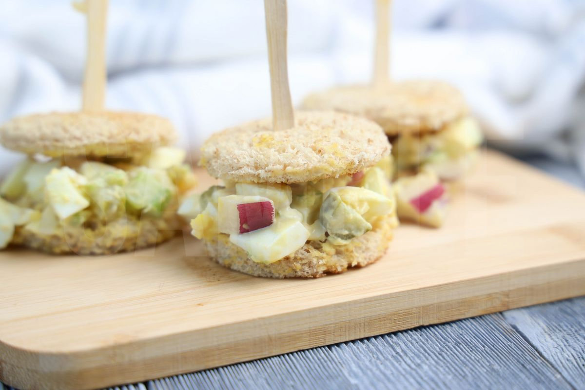 Egg Salad Tea Sandwiches is made with eggs, pickles, red onion, celery, mayo, and mustard. This is a semi exclusive recipe. The Egg Salad Tea Sandwiches comes on a wood cutting board with a gray and white plaid cloth on a gray wood backdrop. Set comes with 11 in process (in process are the same for all sets) and 29 final shots (finals are different for each set) along with recipe in text format. Both vertical and horizontal shots are available for social media. One set of four. Sample removed on finals.