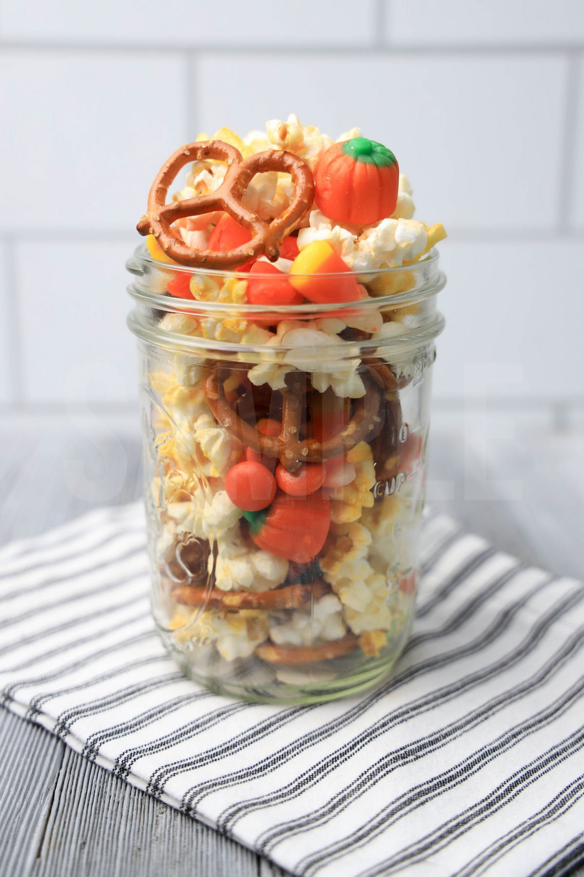 Fall Snack Mix is made with pretzels, popcorn, and candy corn. This is a semi exclusive recipe. The Fall Snack Mix comes in a mason jar with a white striped napkin on a gray wood backdrop. Set comes with 7 in process (in process are the same for all sets) and 19 final shots (finals are different for each set) along with recipe in text format. Both vertical and horizontal shots are available for social media. One set of four. Sample removed on finals.