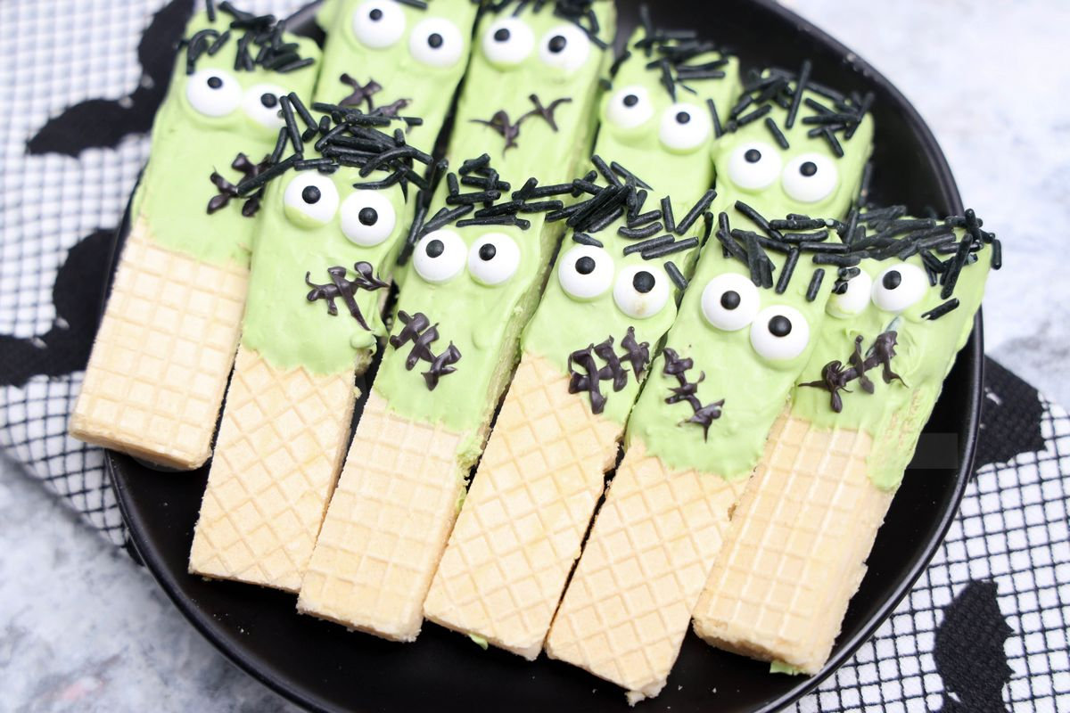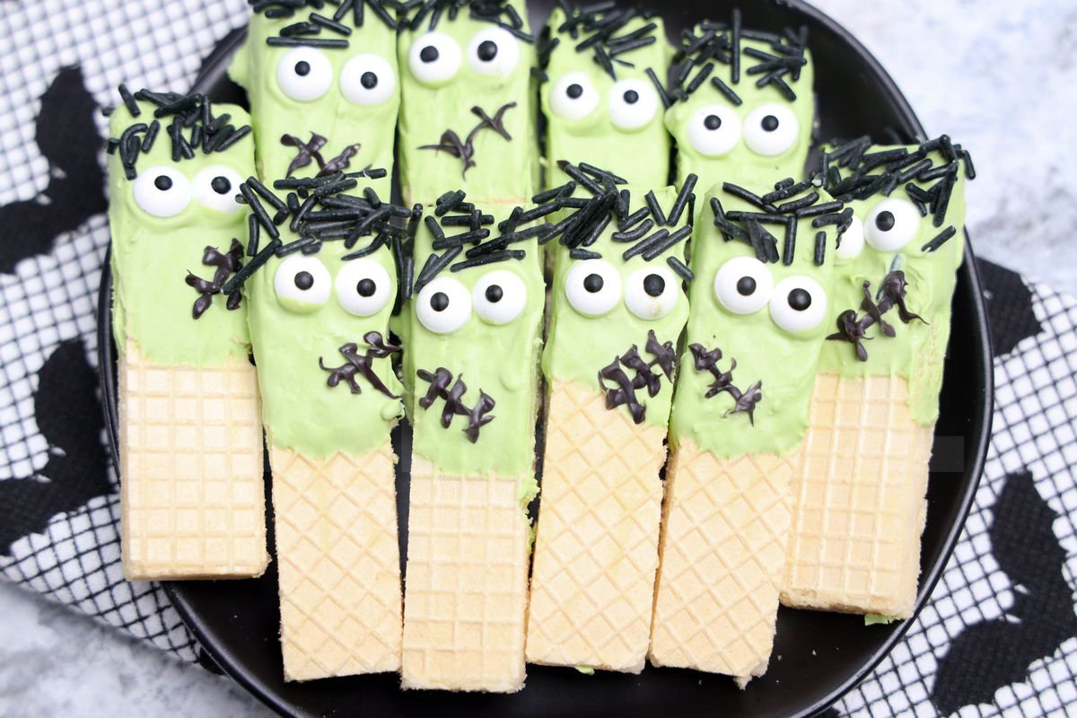 Frankenstein Wafers is made with wafers, green candy melts, black jimmies and candy eyes. This is a semi exclusive recipe. The Frankenstein Wafers comes on a black plate with a marble wood backdrop. Set comes with 9 in process (in process are the same for all sets) and 15 final shots (finals are different for each set) along with recipe in text format. Both vertical and horizontal shots are available for social media. One set of four. Sample removed on finals.