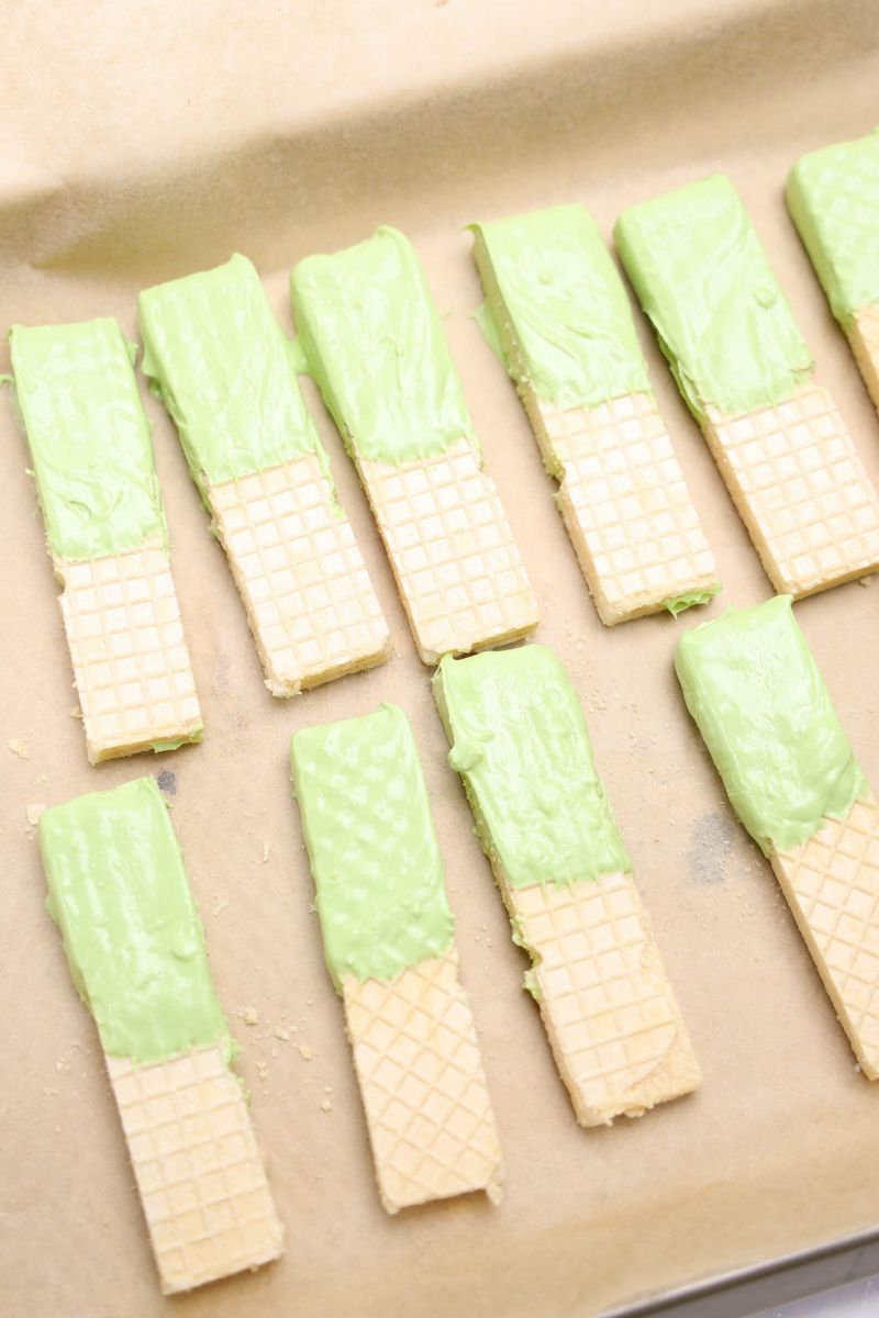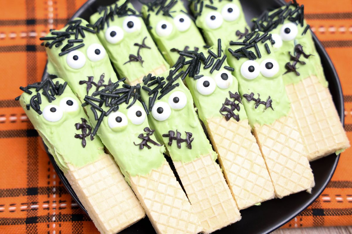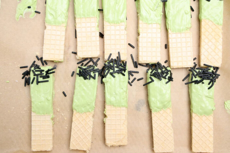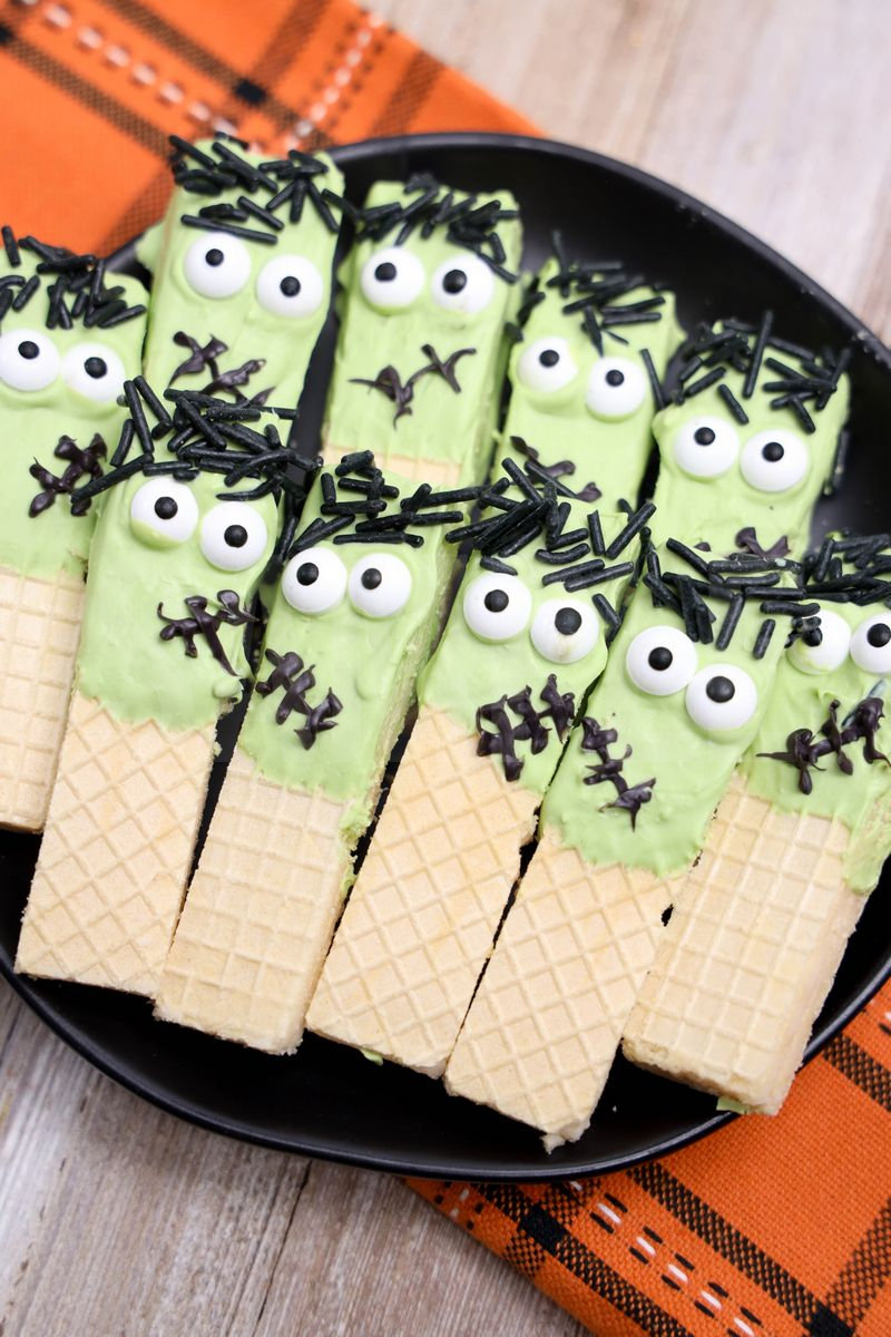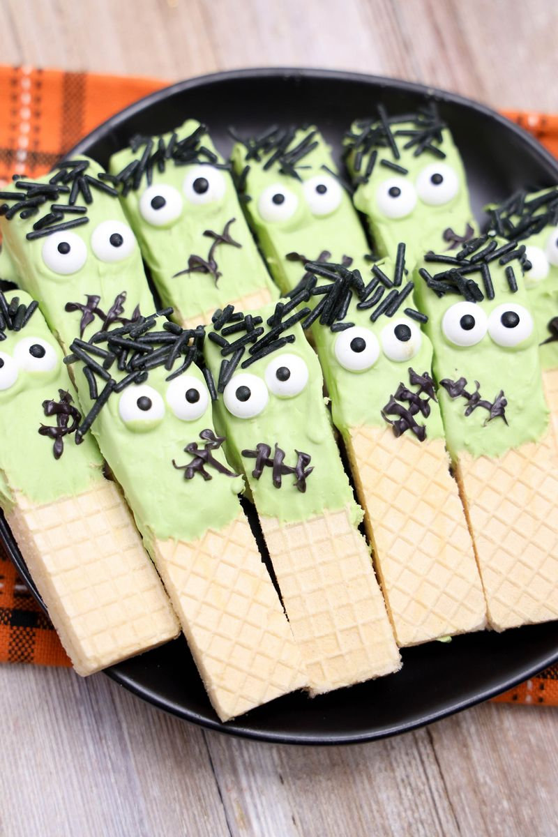 Frankenstein Wafers is made with wafers, green candy melts, black jimmies and candy eyes. This is a semi exclusive recipe. The Frankenstein Wafers comes on a black plate with a rustic wood backdrop. Set comes with 9 in process (in process are the same for all sets) and 15 final shots (finals are different for each set) along with recipe in text format. Both vertical and horizontal shots are available for social media. One set of four. Sample removed on finals.