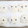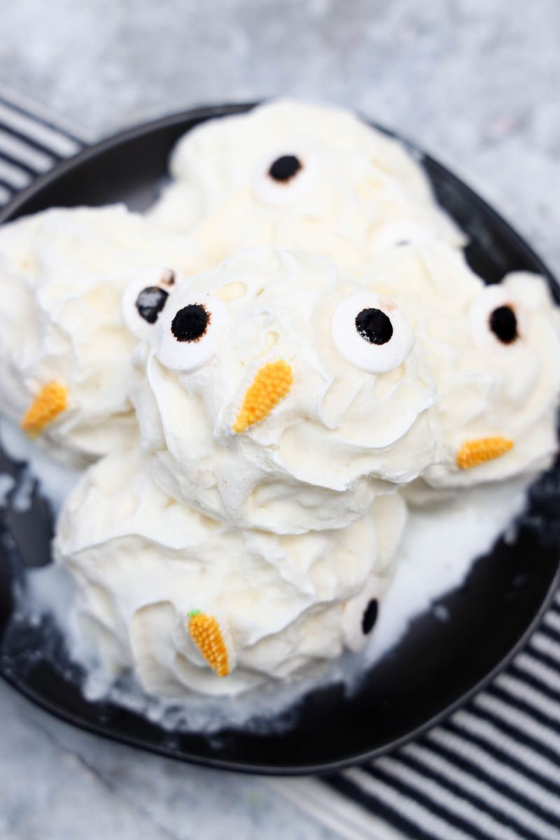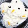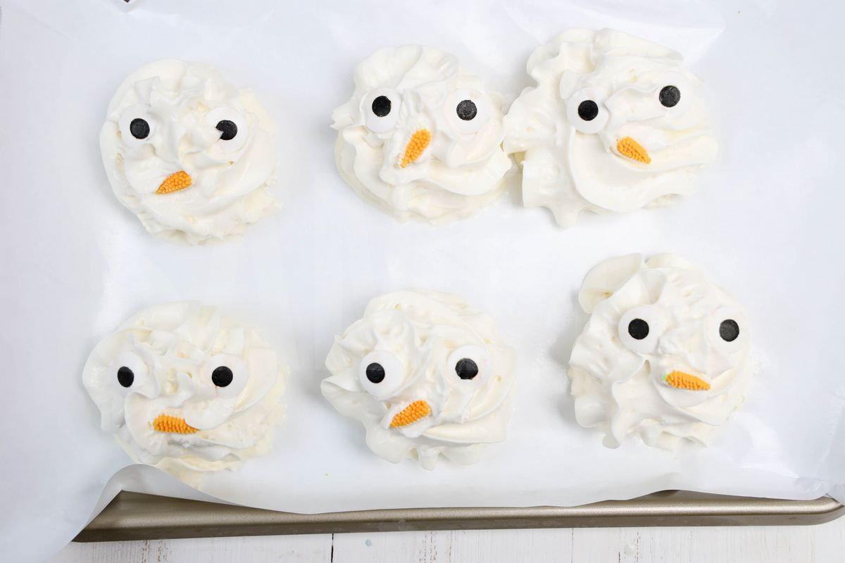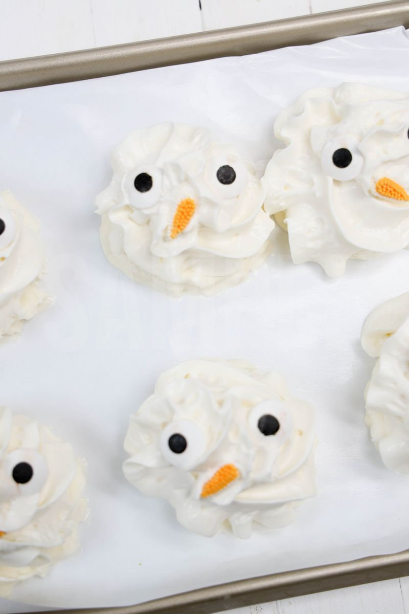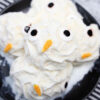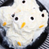 Frozen Whipped Cream Snowman is made with whipped cream, candy eyes, and carrot icing decorations. This is a semi exclusive recipe. The Frozen Whipped Cream Snowman comes on a black plate with marble wood backdrop. Set comes with 10 in process (in process are the same for all sets) and 18 final shots (finals are different for each set) along with recipe in text format. Both vertical and horizontal shots are available for social media. One set of four. Sample removed on finals.