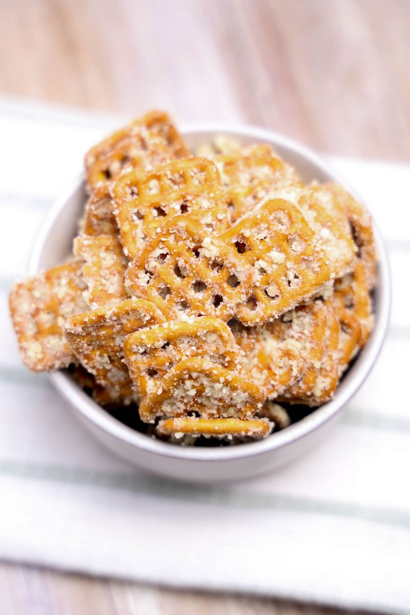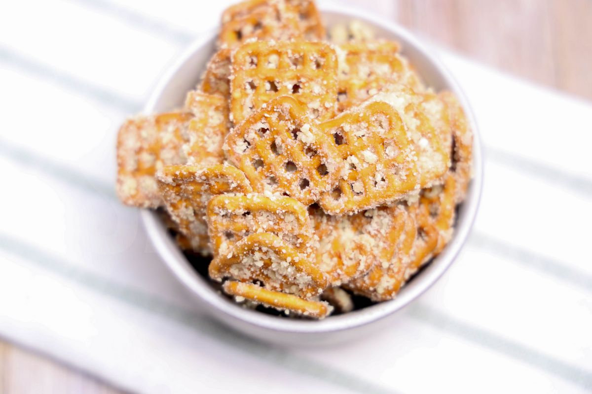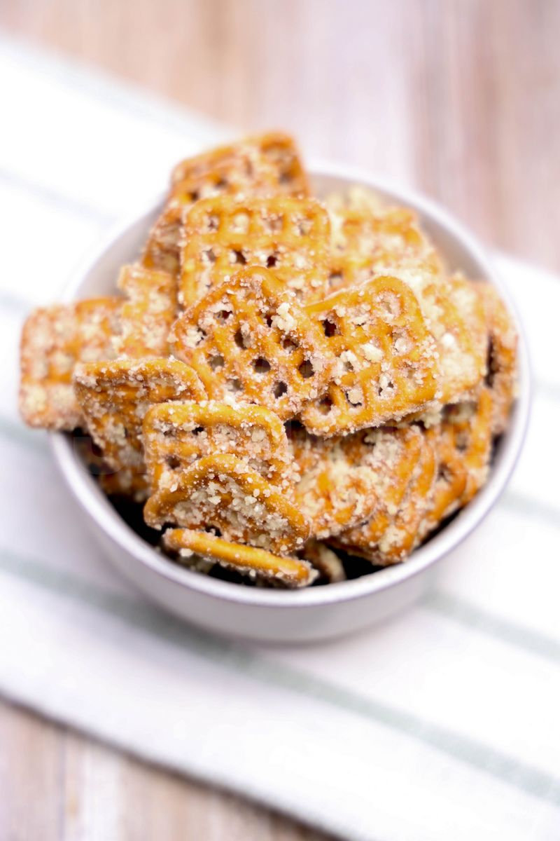 Garlic Parmesan Pretzels is made with garlic, butter, parmesan, and pretzels. This is a semi exclusive recipe. The Garlic Parmesan Pretzels comes on a white bowl with a rustic wood backdrop. Set comes with 9 in process (in process are the same for all sets) and 17 final shots (finals are different for each set) along with recipe in text format. Both vertical and horizontal shots are available for social media. One set of four. Sample removed on finals.