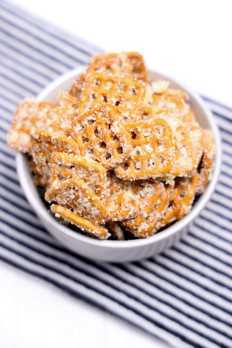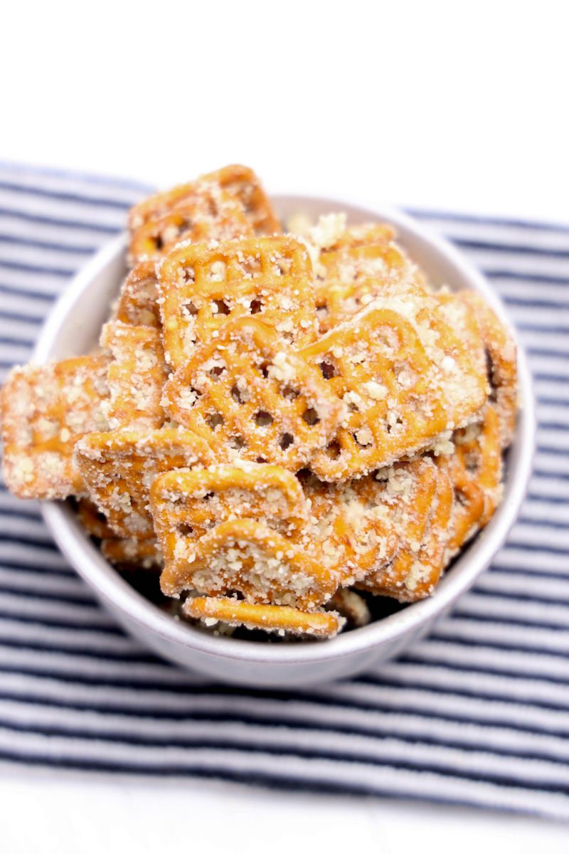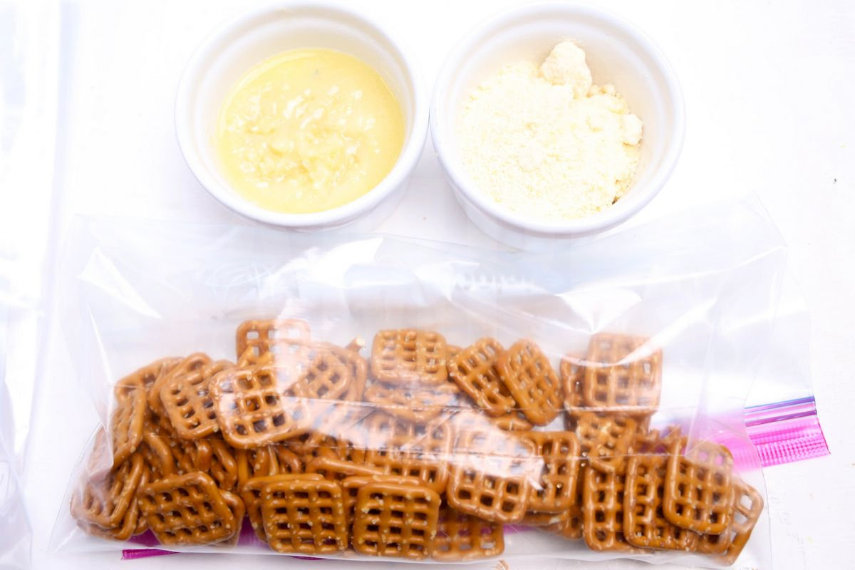 Garlic Parmesan Pretzels is made with garlic, butter, parmesan, and pretzels. This is a semi exclusive recipe. The Garlic Parmesan Pretzels comes on a white bowl with a white wood backdrop. Set comes with 9 in process (in process are the same for all sets) and 15 final shots (finals are different for each set) along with recipe in text format. Both vertical and horizontal shots are available for social media. One set of four. Sample removed on finals.