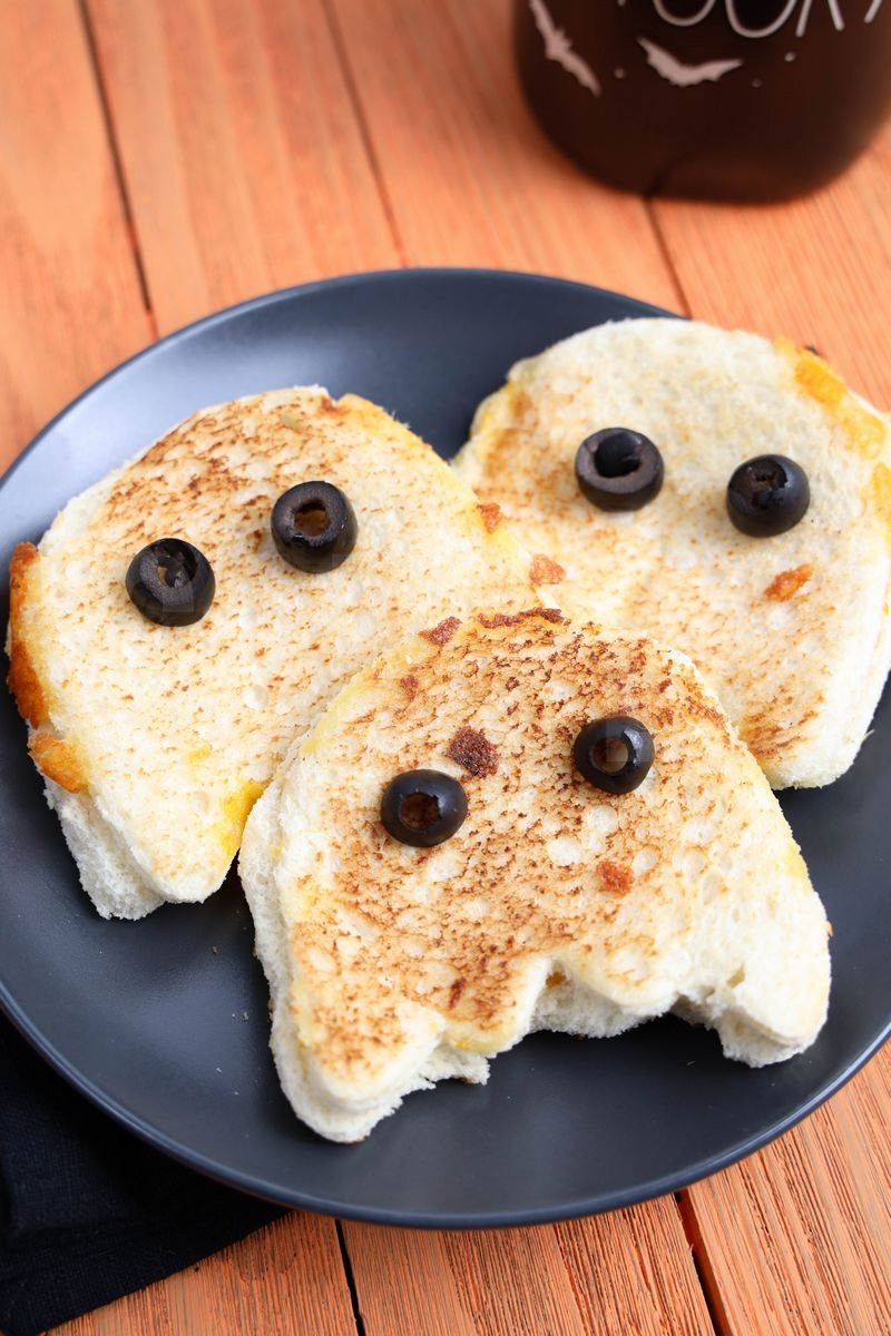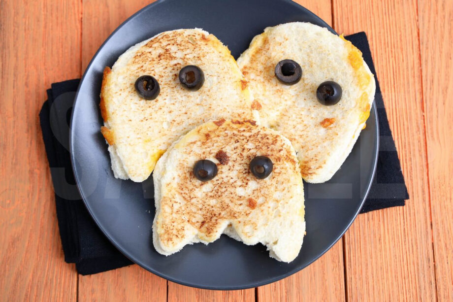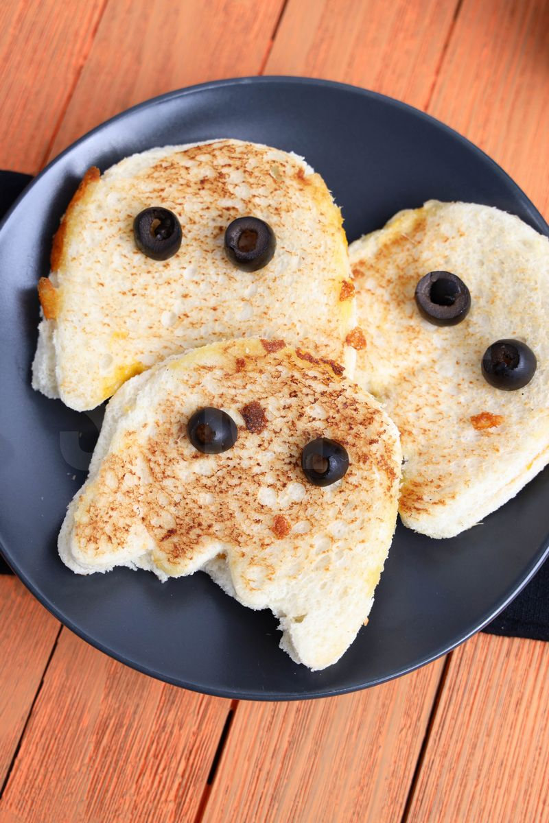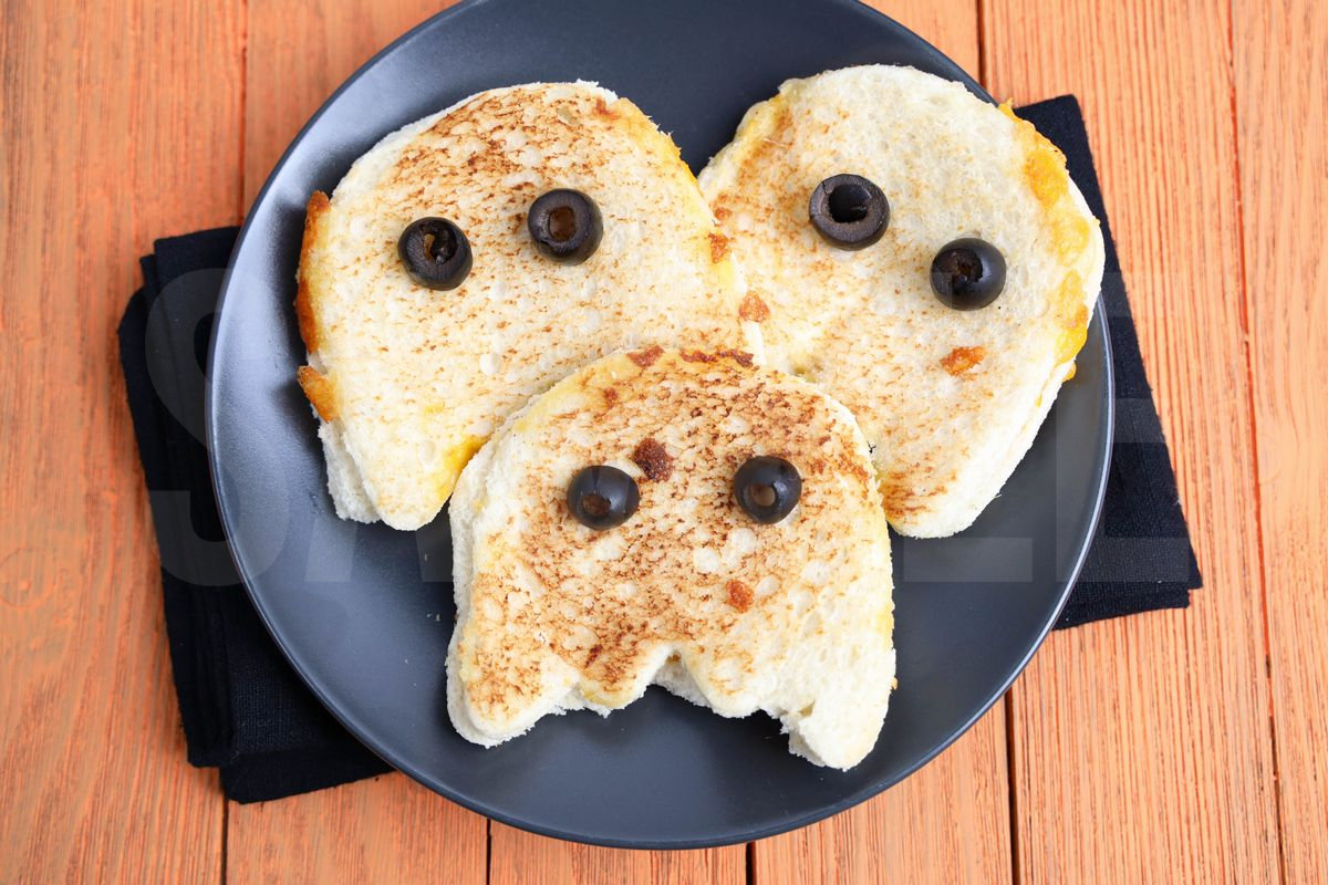 Ghost Grilled Cheese is made with white bread, cheese, and olive oil. This is a semi exclusive recipe. The Ghost Grilled Cheese comes on a gray plate with orange wood backdrop. Set comes with 8 in process (in process are the same for all sets) and 17 final shots (finals are different for each set) along with recipe in text format. Both vertical and horizontal shots are available for social media. One set of four. Sample removed on finals.