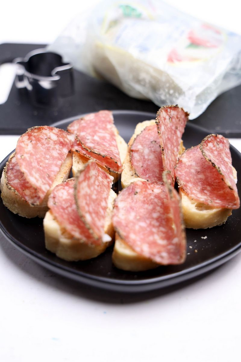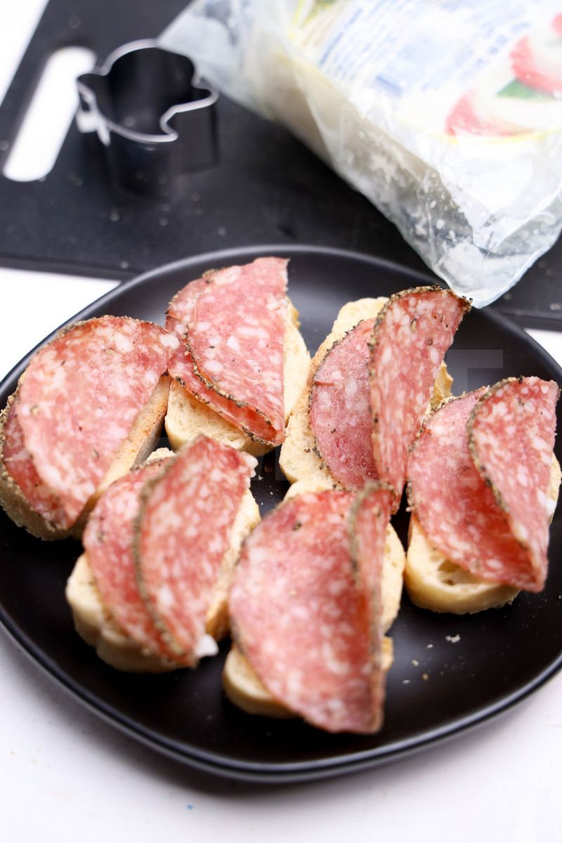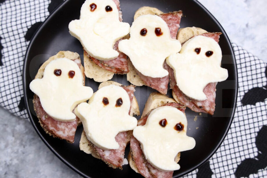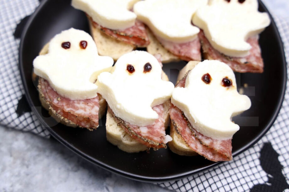 Ghost Salami Crostini is made with fresh mozzarella, crostini bread, peppered salami, and balsamic glaze. This is a semi exclusive recipe. The Ghost Salami Crostini comes on a black plate with a marble wood backdrop. Set comes with 7 in process (in process are the same for all sets) and 16 final shots (finals are different for each set) along with recipe in text format. Both vertical and horizontal shots are available for social media. One set of four. Sample removed on finals.