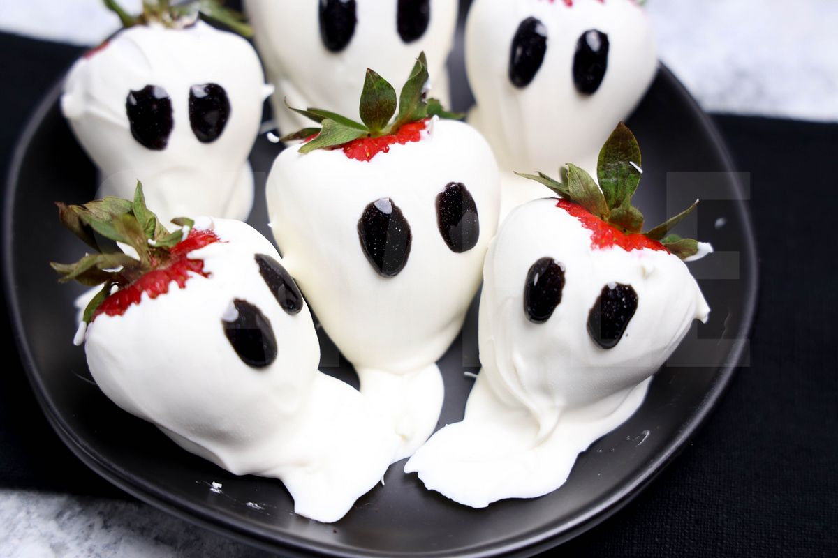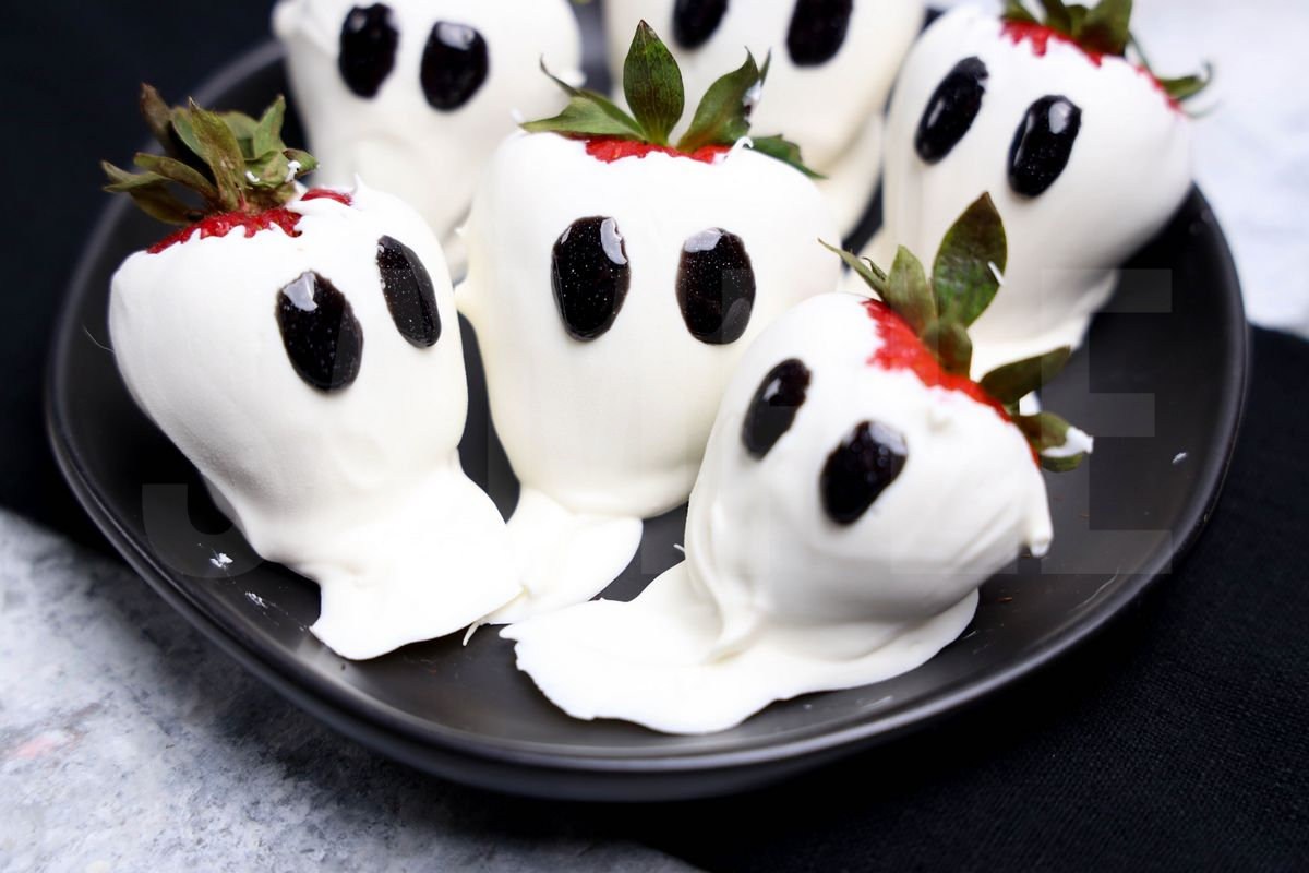 Ghost Strawberries is made with white candy melts, strawberries, and black sparkle gel. This is a semi exclusive recipe. The Monster Strawberries comes on a black plate with marble wood backdrop. Set comes with 11 in process (in process are the same for all sets) and 15 final shots (finals are different for each set) along with recipe in text format. Both vertical and horizontal shots are available for social media. One set of four. Sample removed on finals.