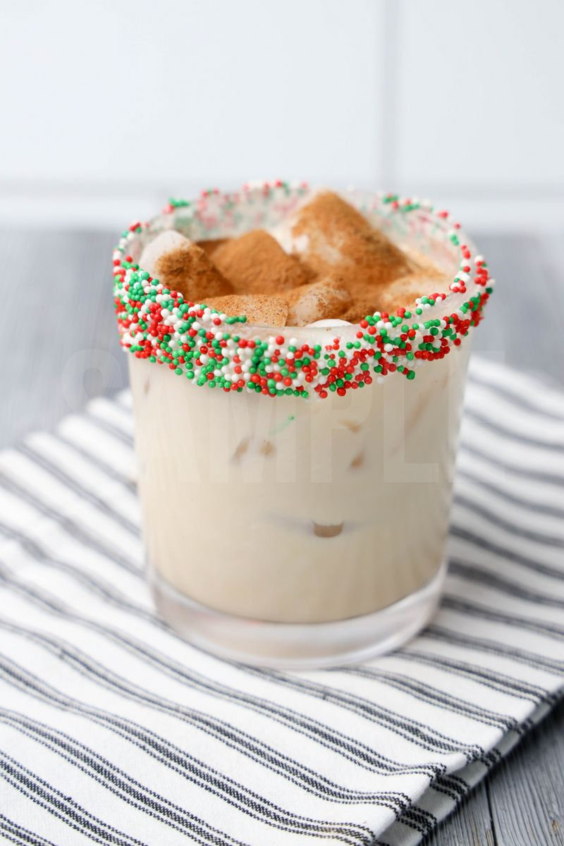 Gingerbread Cookie Cocktail is made with irish cream, half and half, and spices. This is a semi exclusive recipe. The Gingerbread Cookie Cocktail comes in a glass with a white striped napkin on a gray wood backdrop. Set comes with 6 in process (in process are the same for all sets) and 16 final shots (finals are different for each set) along with recipe in text format. Both vertical and horizontal shots are available for social media. One set of four. Sample removed on finals.