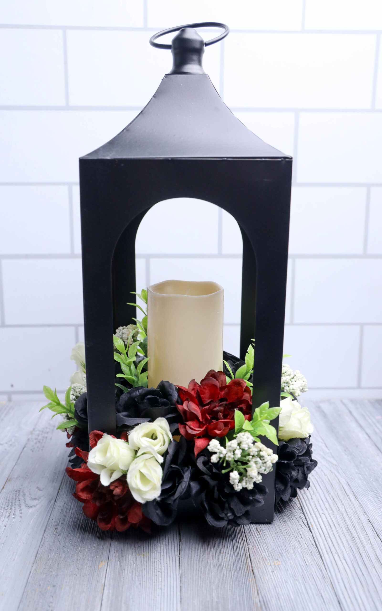 Gothic Wedding Lantern Exclusive made with flowers and vase. This is a exclusive craft. The Gothic Wedding Lantern Exclusive on a gray wood backdrop. Set comes with 0 in process and 13 final shots along with tutorial in text format and videos already sent. Both vertical and horizontal shots are available for social media. Sample removed on finals.