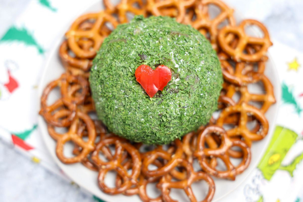 Grinch Cheese Ball is made with cream cheese, sweet gherkin pickles, pretzels, dill, red bell pepper, and parsley. This is a semi exclusive recipe. The Grinch Cheese Ball comes on a white plate with marble wood backdrop. Set comes with 16 in process (in process are the same for all sets) and 16 final shots (finals are different for each set) along with recipe in text format. Both vertical and horizontal shots are available for social media. One set of four. Sample removed on finals.