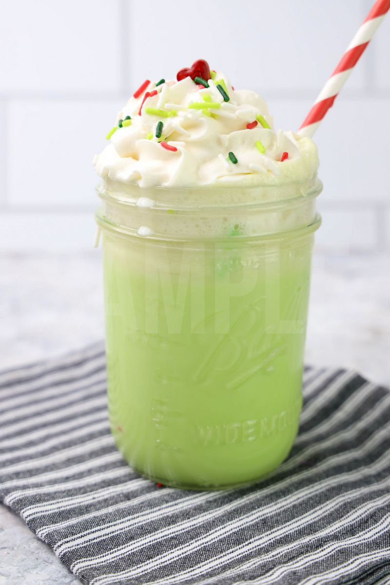 Grinch Hot Chocolate is made with milk, white chocolate chips, and whipped topping. This is a semi exclusive recipe. Grinch Hot Chocolate comes in a glass with a gray striped napkin on a marble wood backdrop. Set comes with 6 in process (in process are the same for all sets) and 17 final shots (finals are different for each set) along with recipe in text format. Both vertical and horizontal shots are available for social media. One set of four. Sample removed on finals.