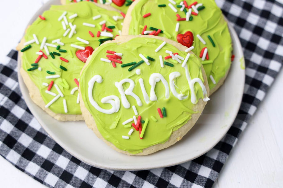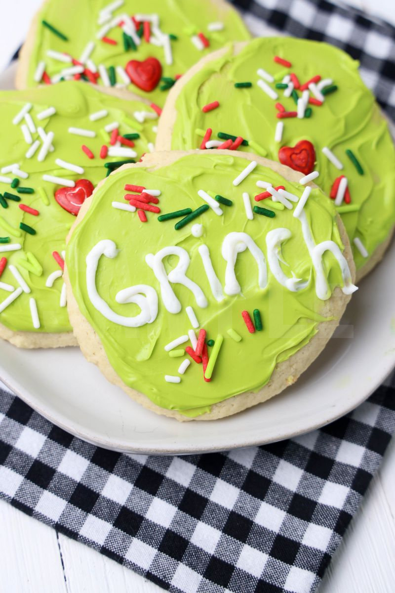 Grinch Lofthouse Cookies is made with flour, sugar, and icing. This is a semi exclusive recipe. The Grinch Lofthouse Cookies comes on a white plate with a plaid napkin on a white wood backdrop. Set comes with 10 in process (in process are the same for all sets) and 18 final shots (finals are different for each set) along with recipe in text format. Both vertical and horizontal shots are available for social media. One set of four. Sample removed on finals.