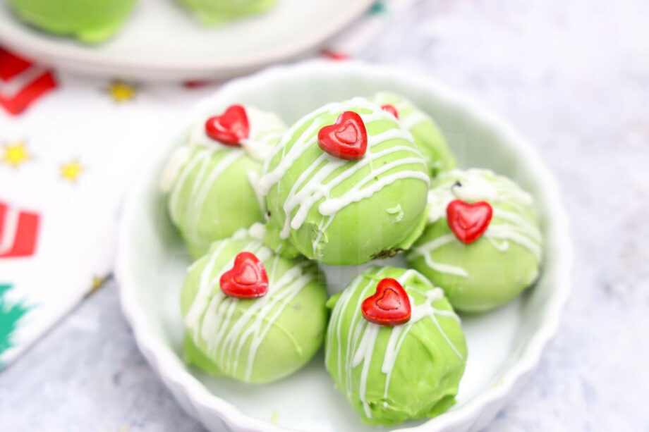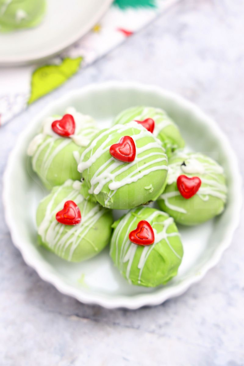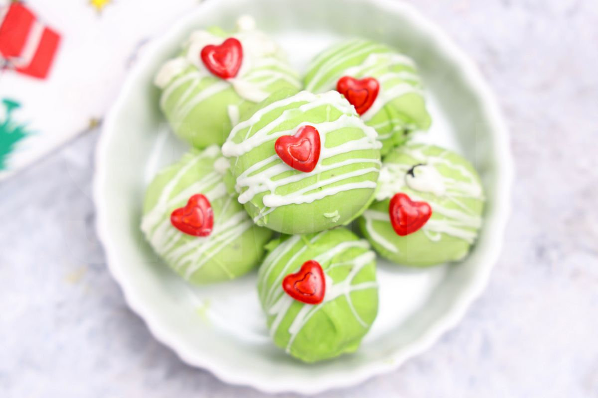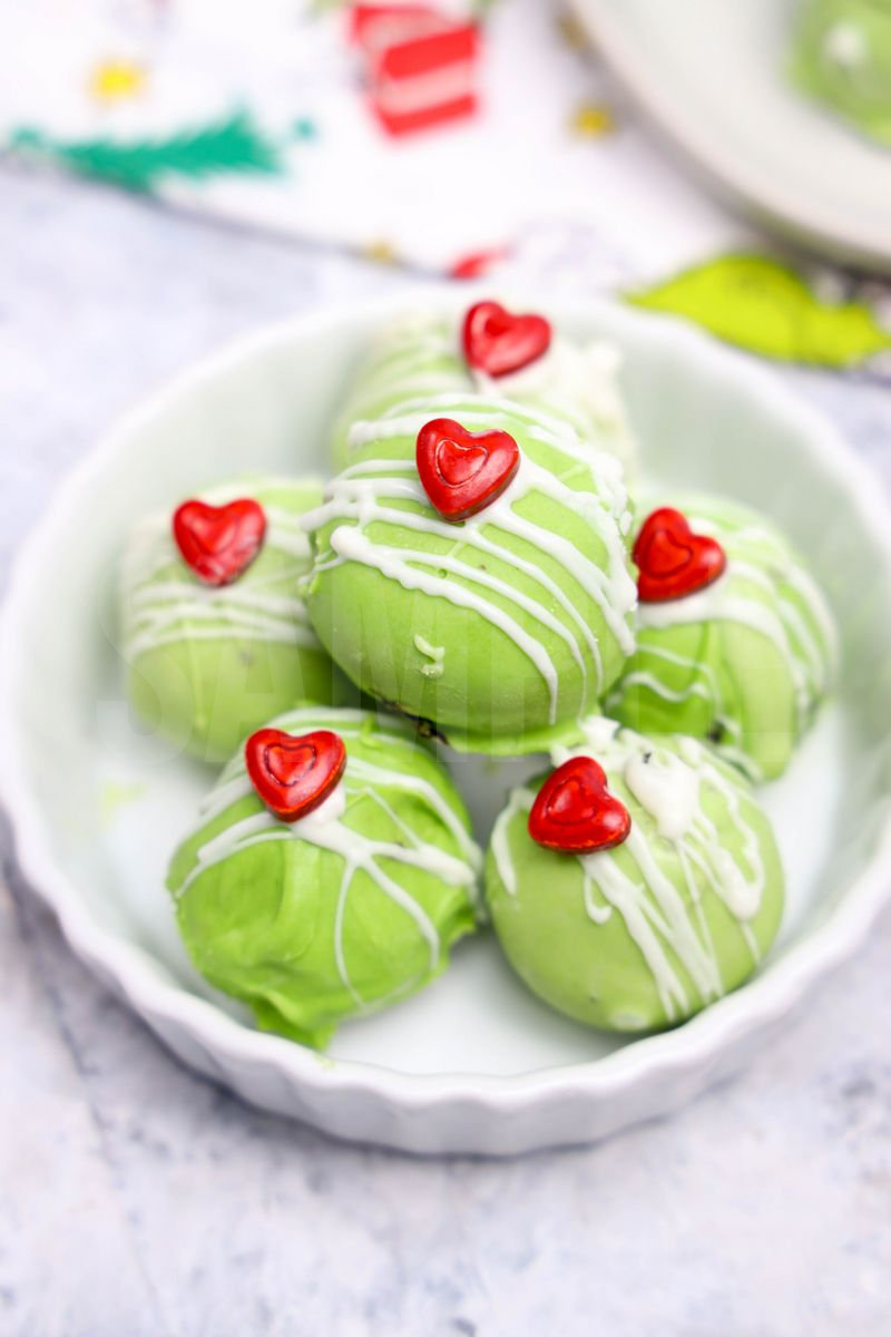 Grinch Oreo Balls is made with oreos, white chocolate, green food gel, and cream cheese. This is a semi exclusive recipe. The Grinch Oreo Balls come on a white plate with marble wood backdrop. Set comes with 15 in process (in process are the same for all sets) and 15 final shots (finals are different for each set) along with recipe in text format. Both vertical and horizontal shots are available for social media. One set of four. Sample removed on finals.