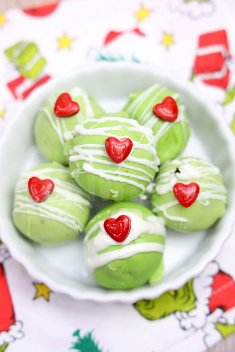 Grinch Oreo Balls is made with oreos, white chocolate, green food gel, and cream cheese. This is a semi exclusive recipe. The Grinch Oreo Balls come on a white plate with rustic wood backdrop. Set comes with 15 in process (in process are the same for all sets) and 17 final shots (finals are different for each set) along with recipe in text format. Both vertical and horizontal shots are available for social media. One set of four. Sample removed on finals.